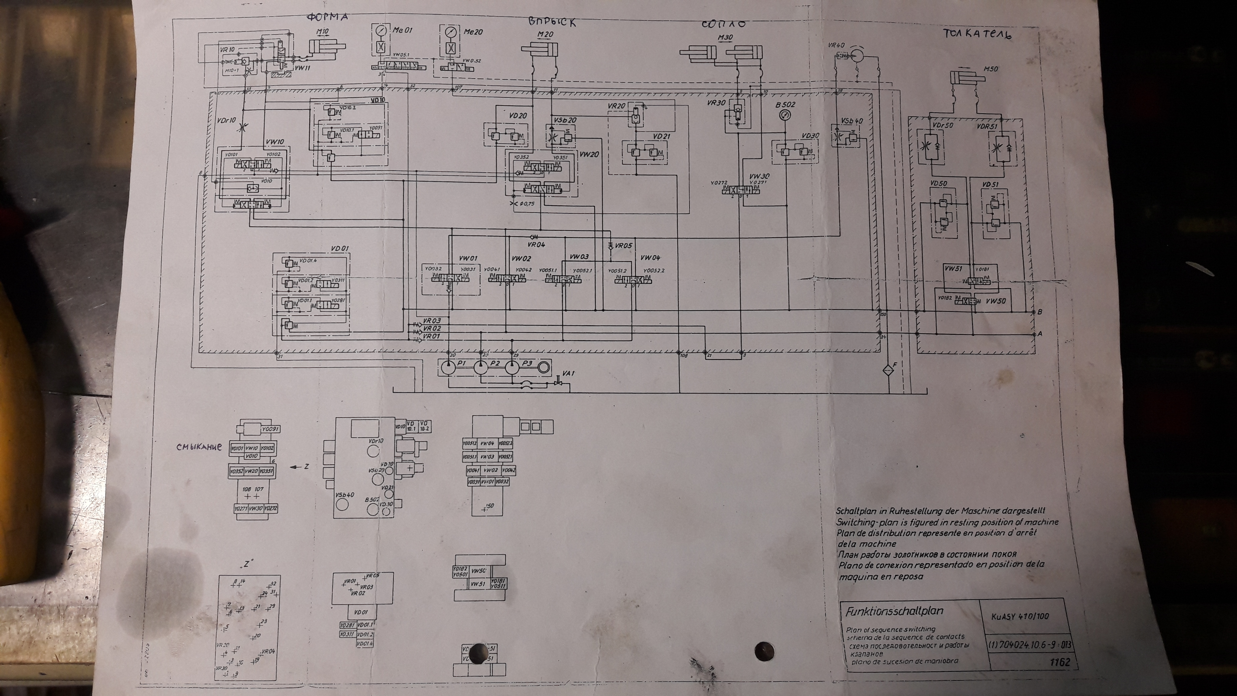 Решилась сломаться одна моя подопечная после того как решила долить масло в бак (заливала с непочатой бочки)! Пропало давление на Y0031. Не скажу с уверенностью но, насосы исправны! Как? Я поменяла местами шланги от 2х малых. На Y0041 давление есть все 150! Перебрала: VW01; VW02; VW03 сломана была пружина; VW04 заклинило; VD01; VW20 из за самопроизвольного движения шнека вперед. Все равно давления нет.