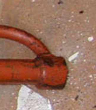 Вероятнее свищ внутри .Вода идет по большой трубе(как чехол),затем в бок по малой.