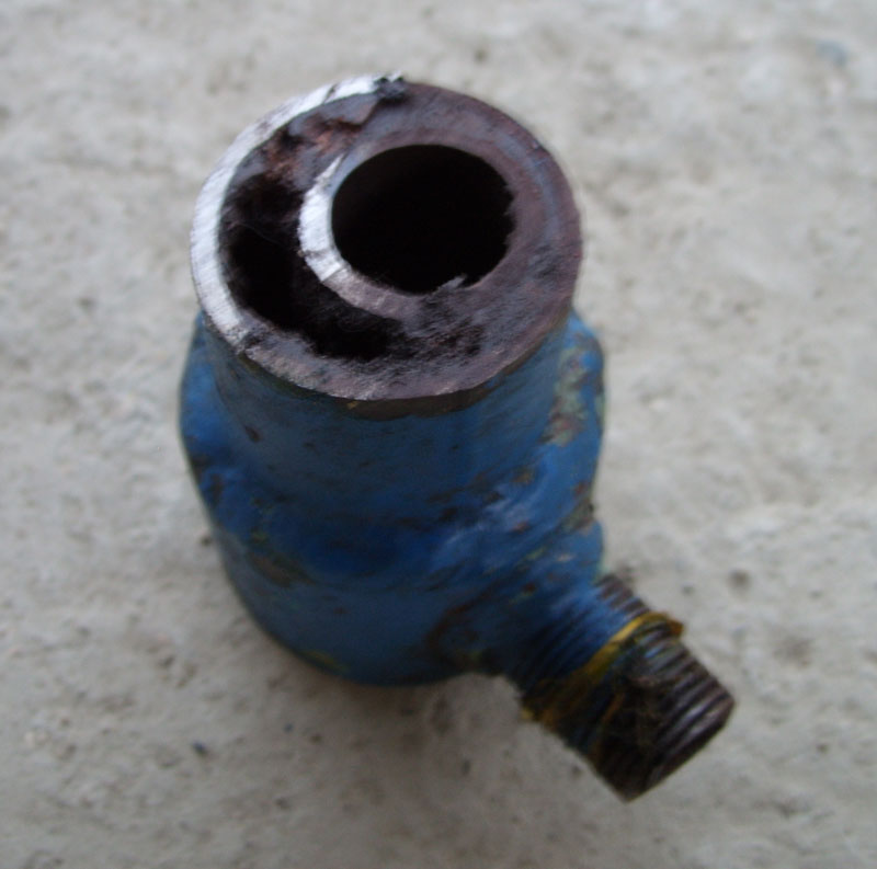 чтобы увеличить просвет для воды в месте выхода в пол-дюймовую трубу.Может кто знает для чего на сливе масла наболдажник сделан, просто технологически