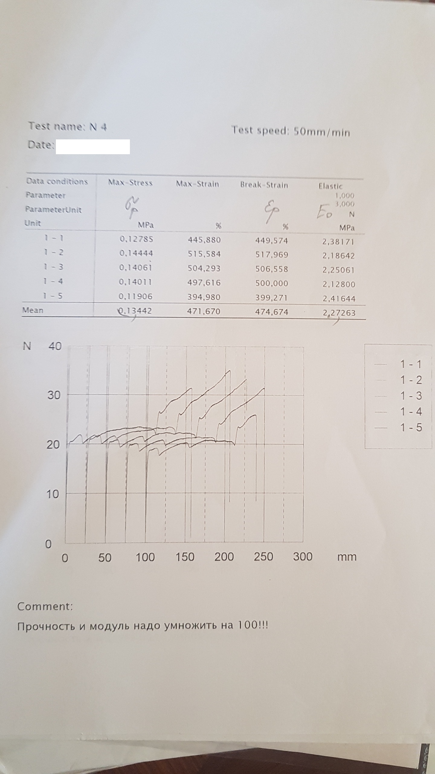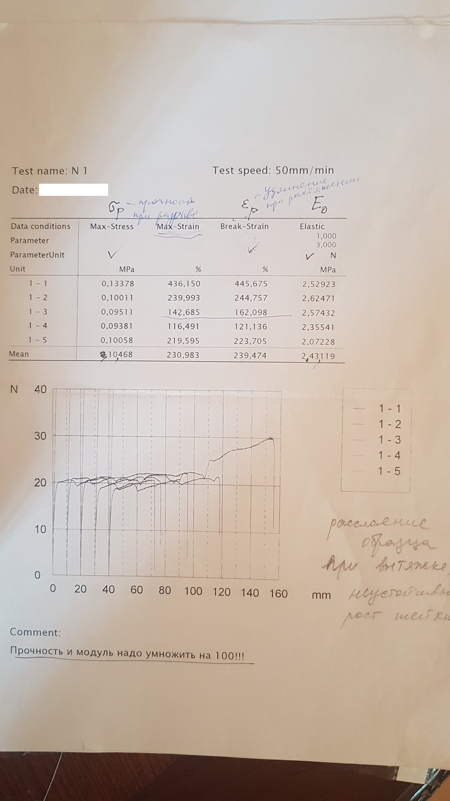На счет критики относительно малого удлиннения: 50 мм/мин обычно дает гораздо меньший процент удлиннения, чем 5 мм/мин. Может дело в этом.