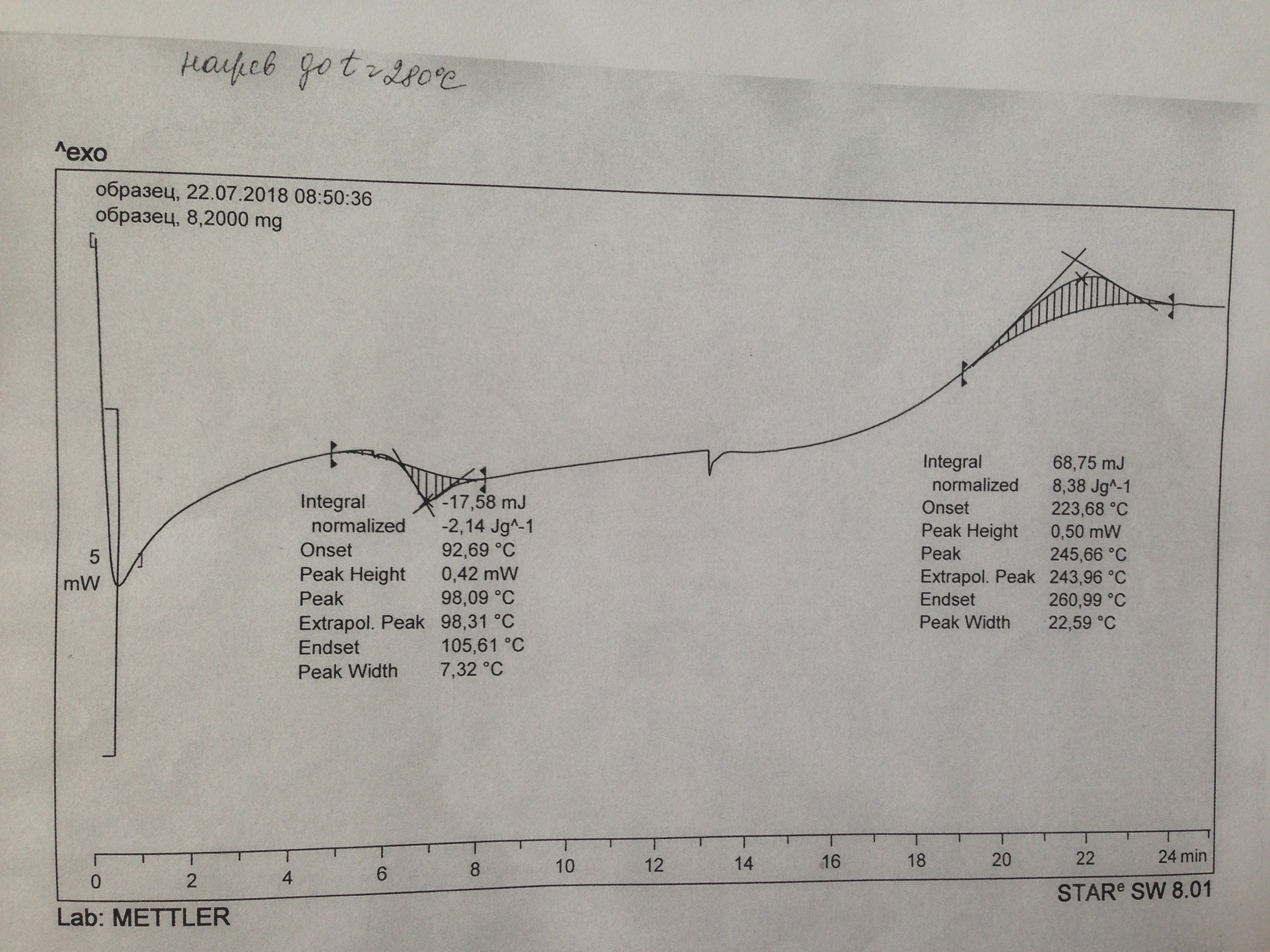Возможно, это выдохшийся ПСВ (EPS), первый пик - Tg, второй пик - деструкция.