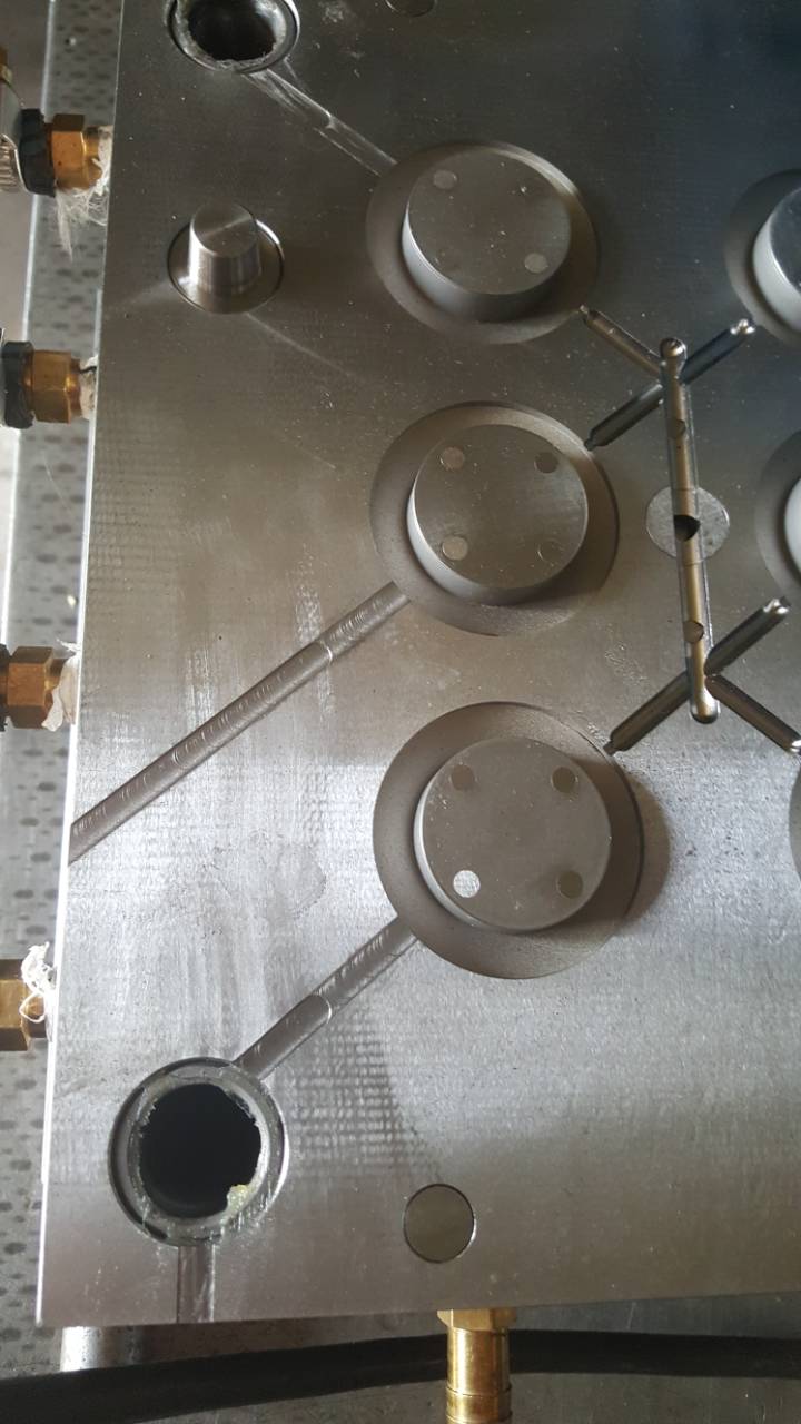 Испытали пресс-форму, материал полиамид, холодноканальная- напротив места впрыска появился дефект литья (запирание воздуха?).