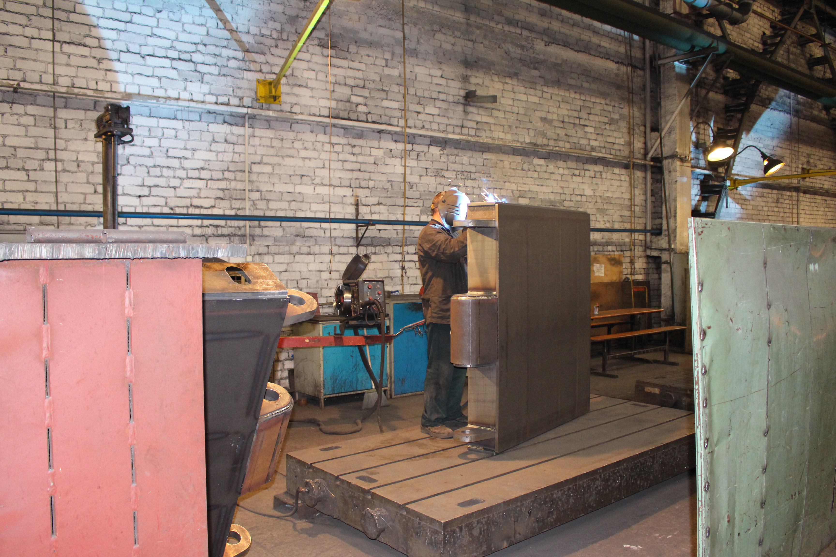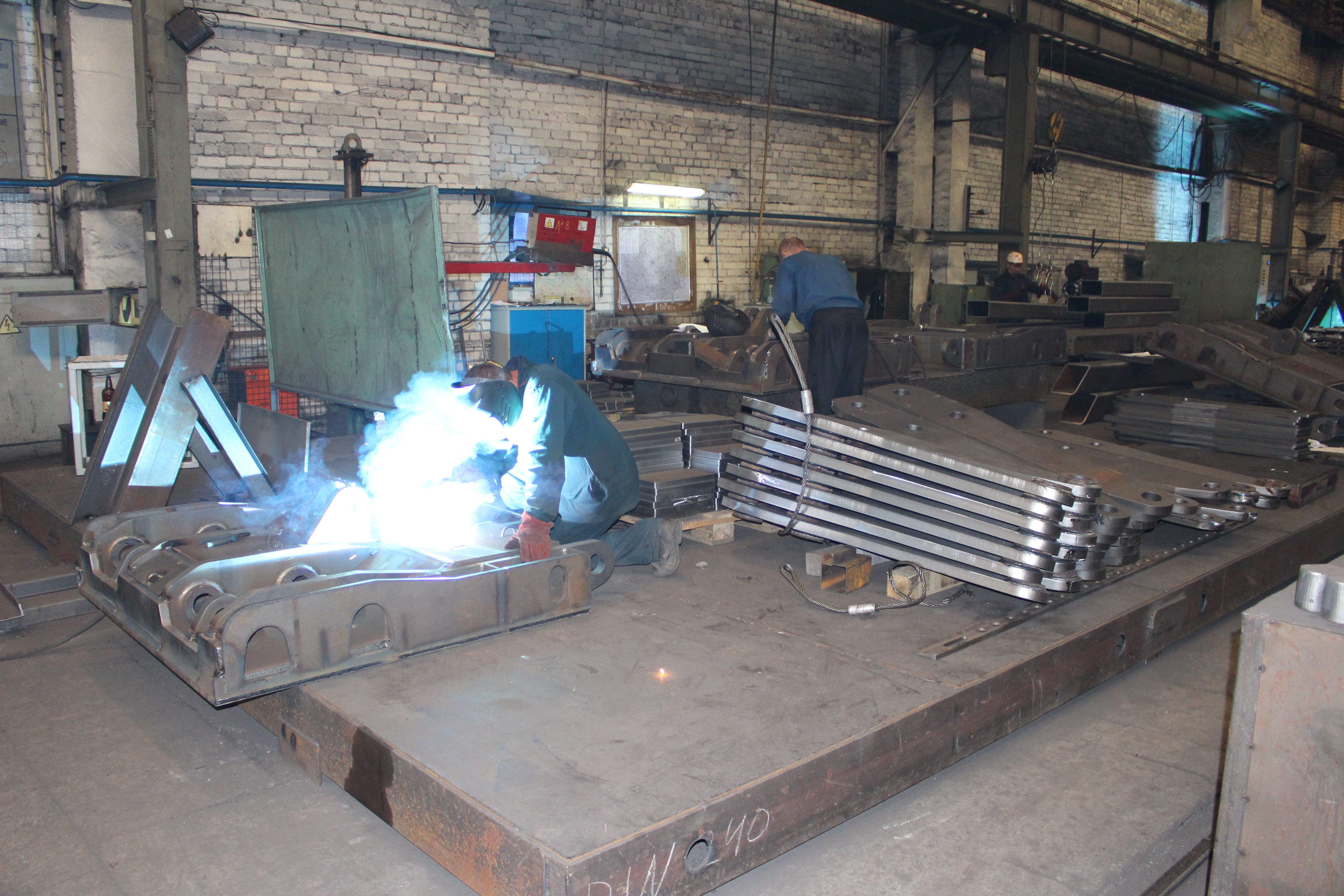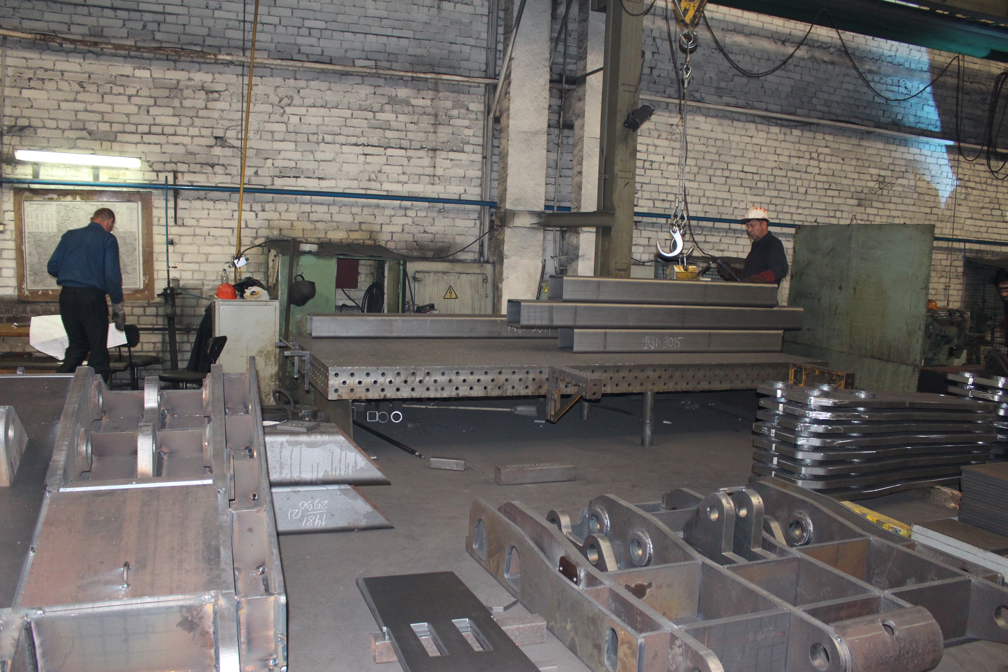 В этом цеху проходит резка, предварительная сварка, частичная механическая обработка и окончательная сварка на 3D столах Demmeler. «Конечно, когда выпускаешь термопластавтоматы тысячами, то экономически выгодно производить сварку роботами, но поскольку мы еще только в начале пути, то варим на столах Деммелера – качество сварки высокое.» «Очень многие после того как ввели пошлину захотели испортить нам репутацию и начали рассказывать, что «Атлант» покупает все в Китае. Но это не так. В 30 километрах от Барановичей есть литейный завод, который для нас льет плиты. Мы их отправляем на механическую обработку и далее, потом ставим на ТПА.»