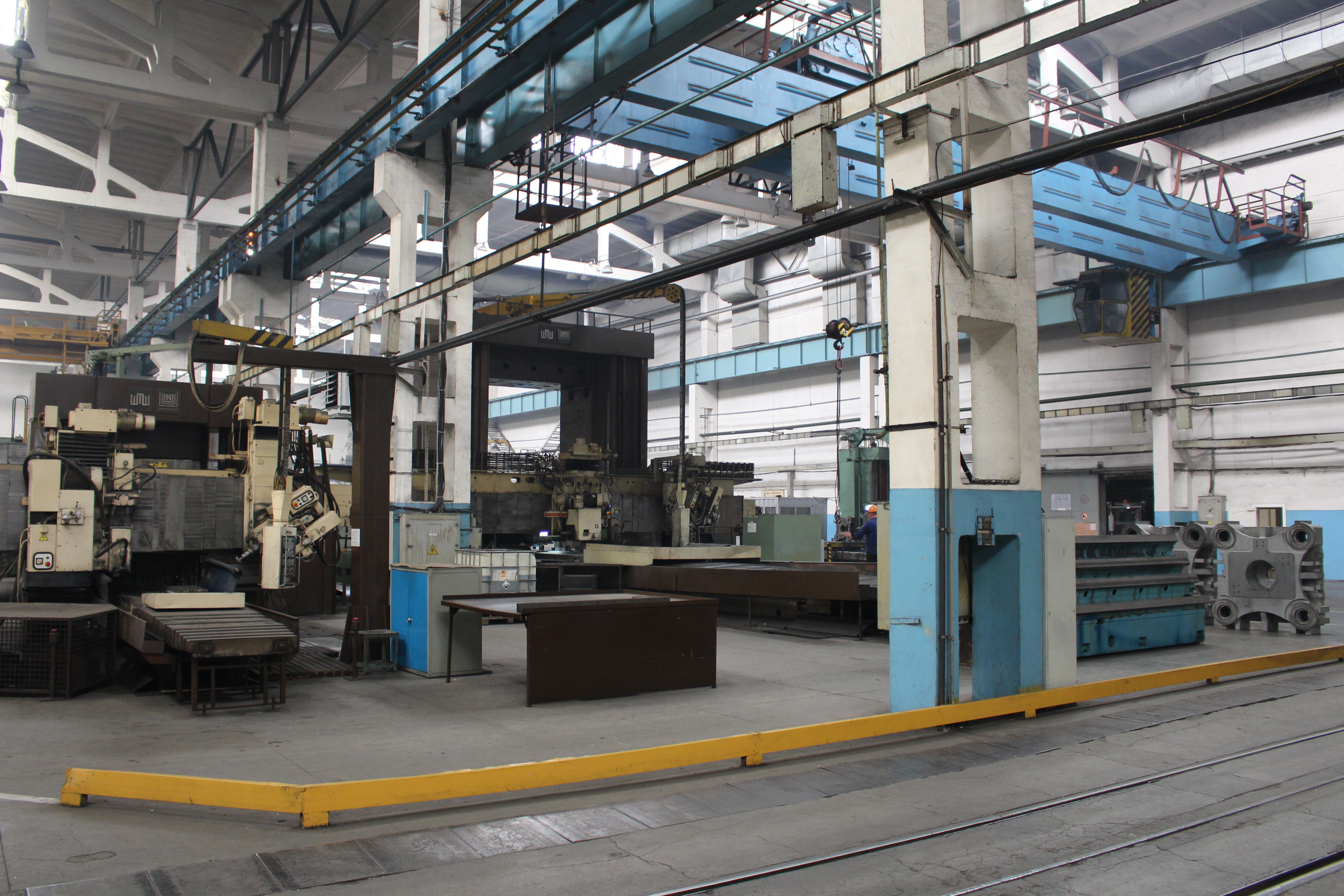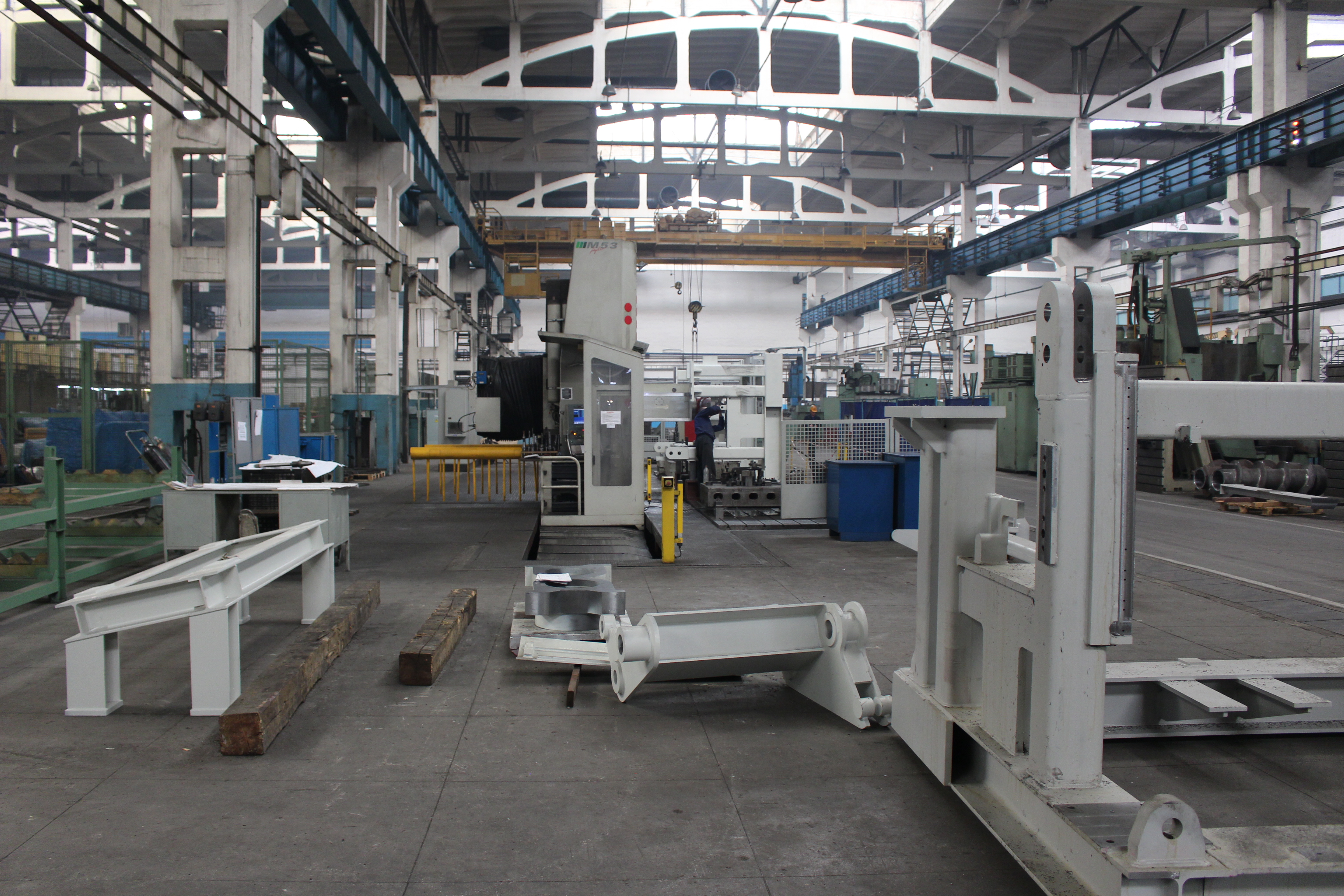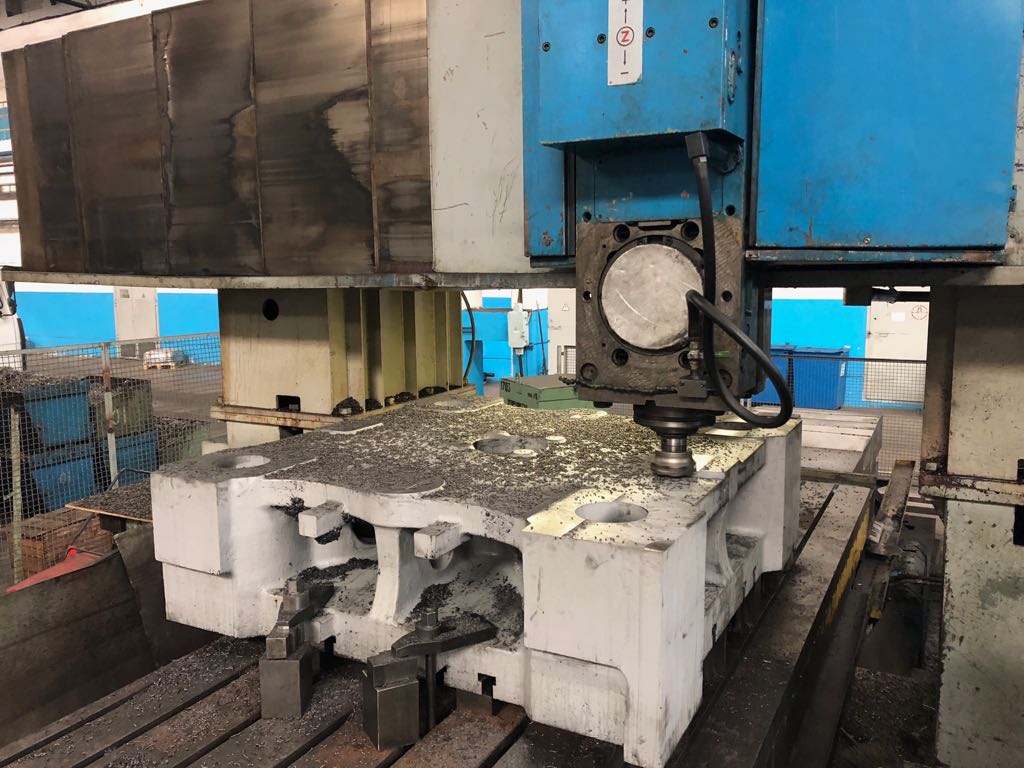 Станок позволяет обрабатывать детали до 14 метров длинной 5 метров шириной 4,5 высотой с точностью до сотых. Работает круглосуточно.