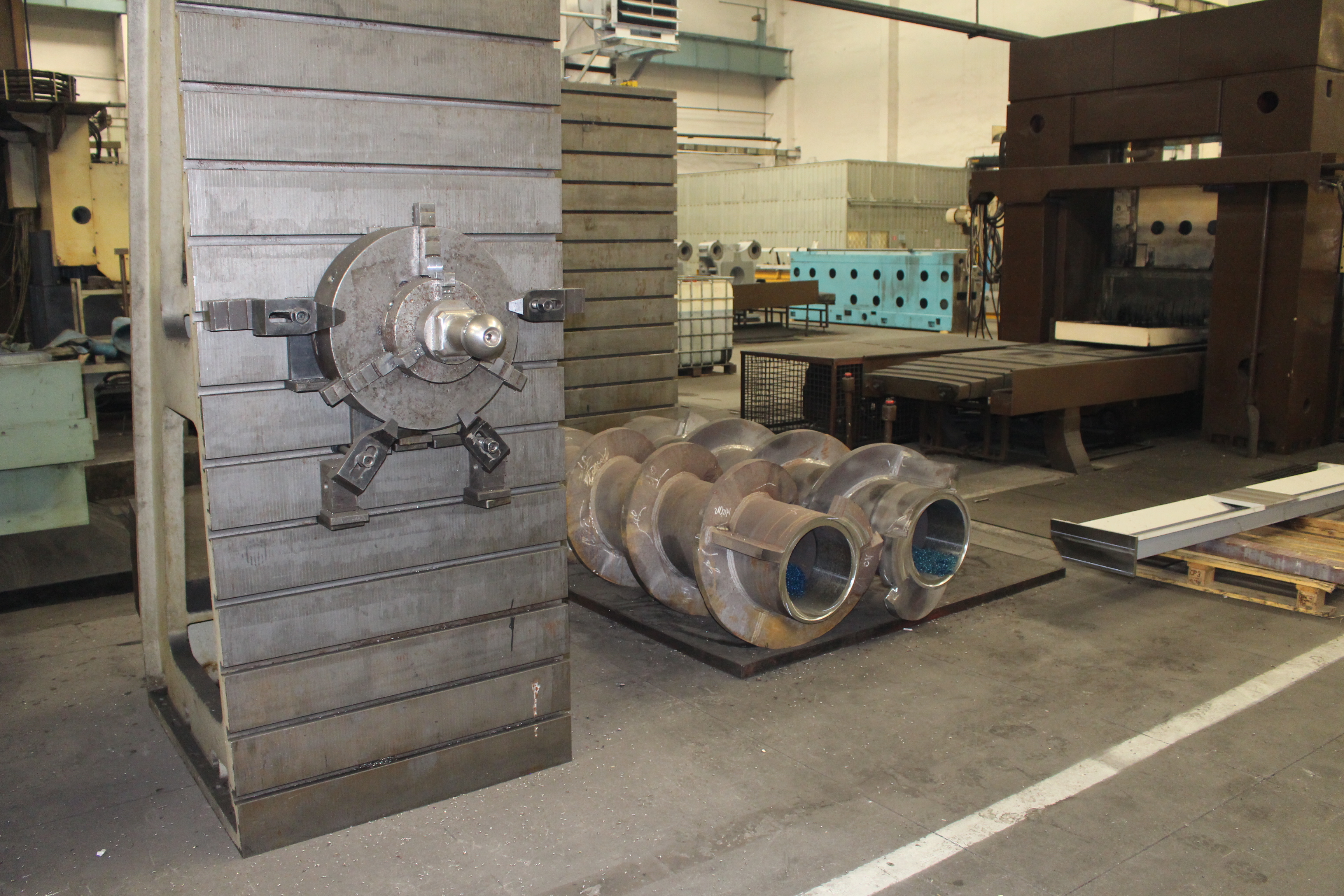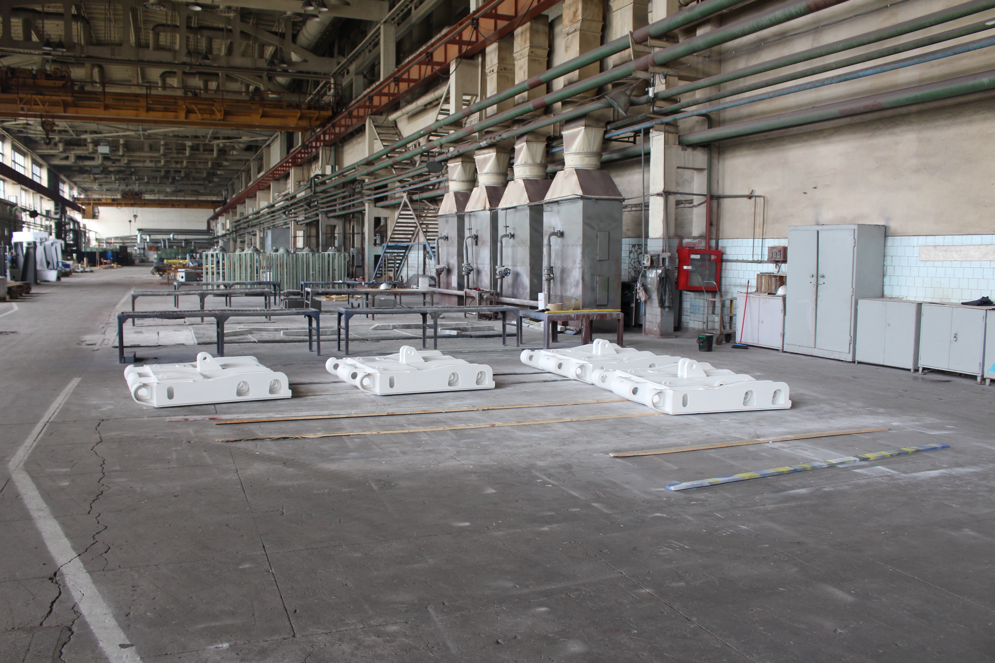 Плита отлитая в России на 700 тонную машину и элементы станин ждут очереди на мех обработку.