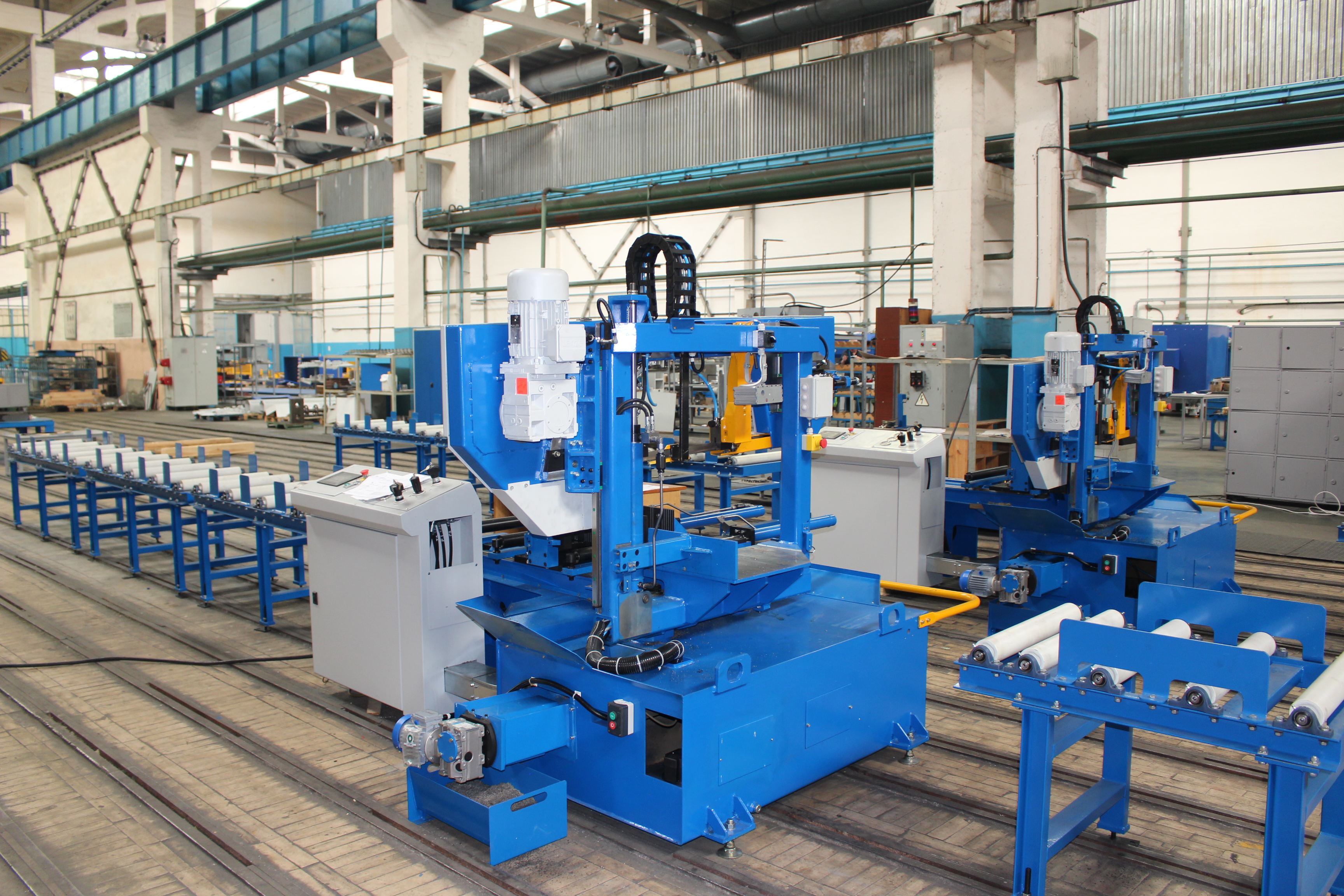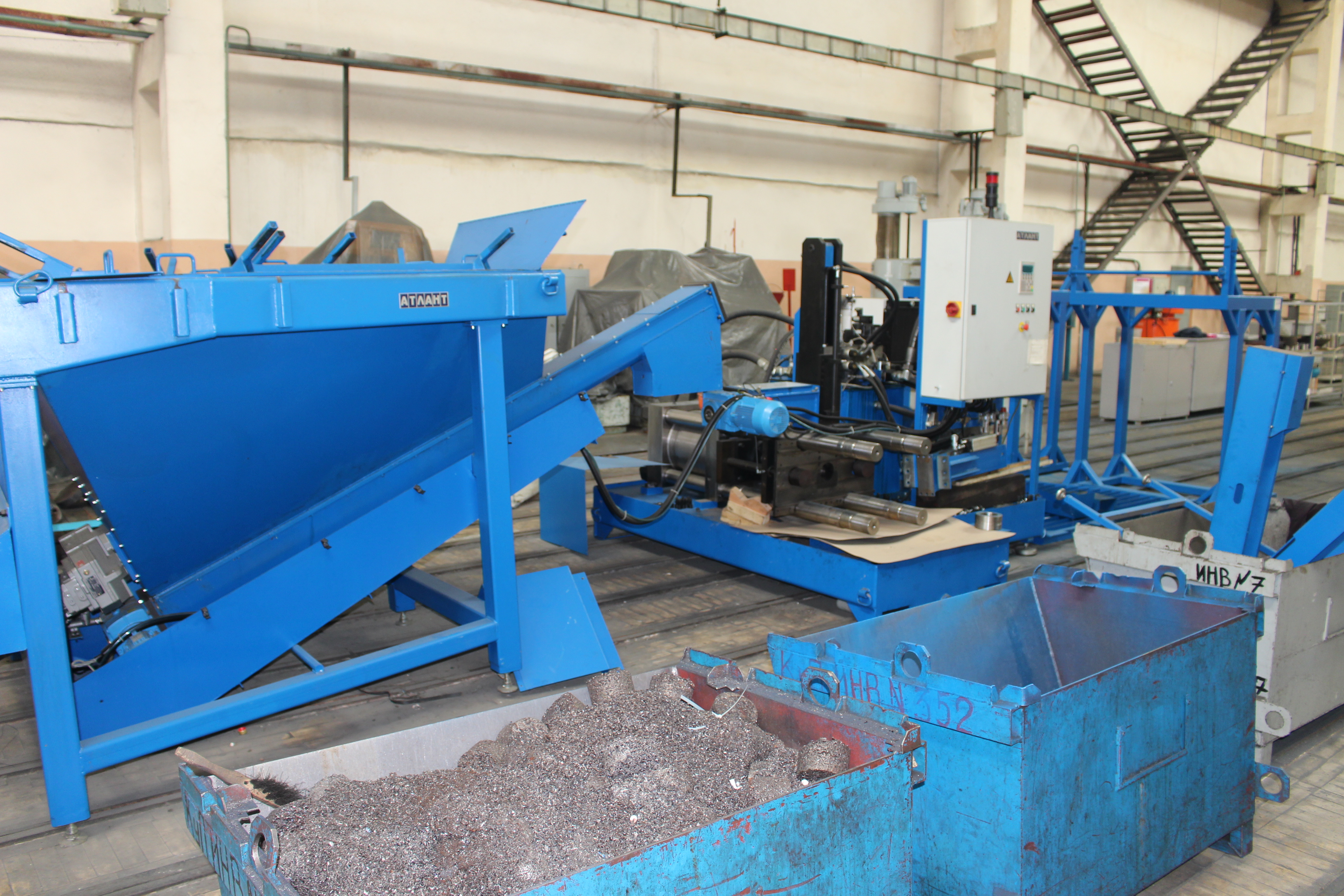 Ждут отгрузки ленточные отрезные станки для металлических заготовок, разматыватели. Брекетировочные пресса для металлической стружки (в прошлом году был огромный проект для Новосибирского авиационного завода)