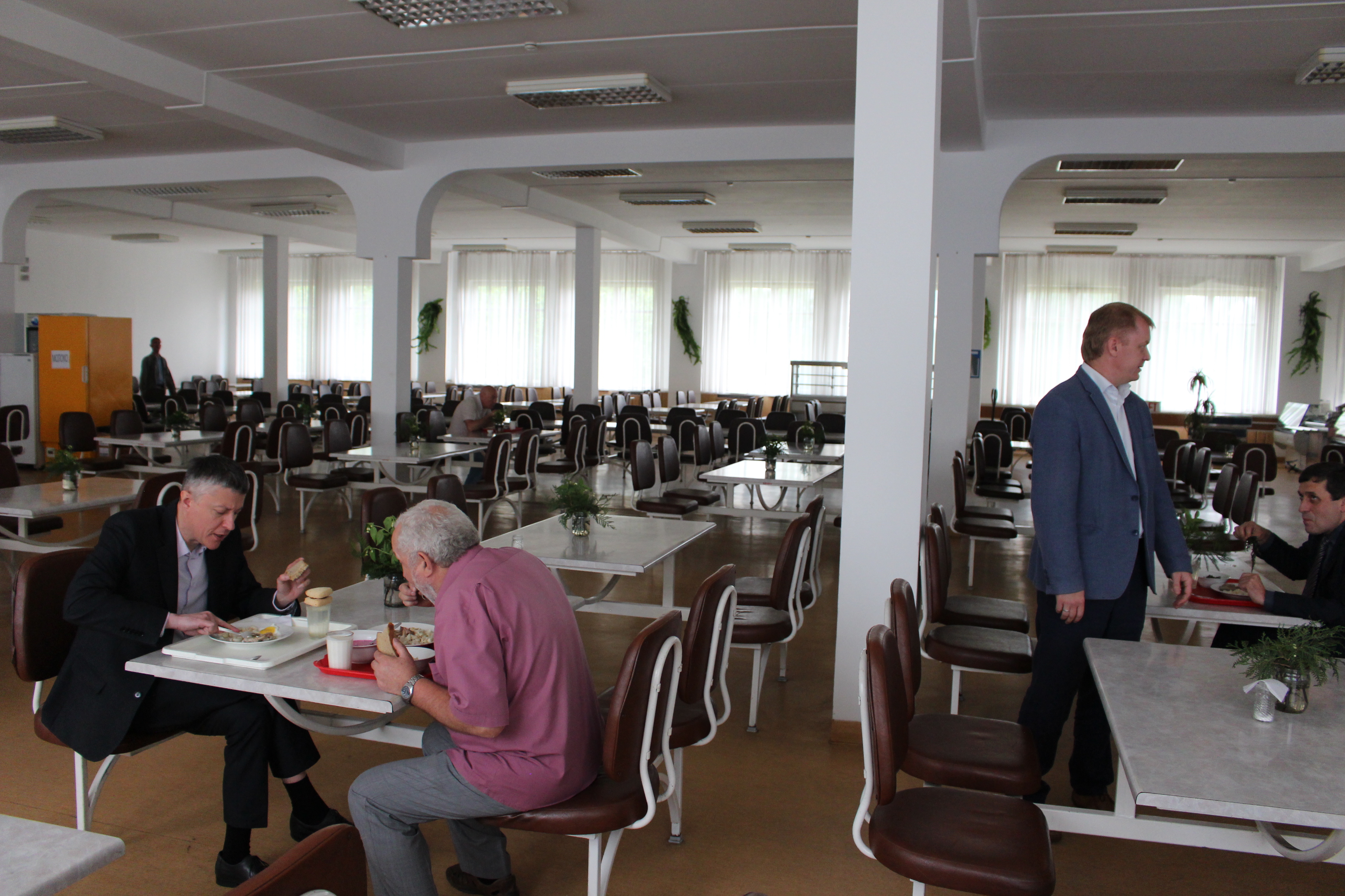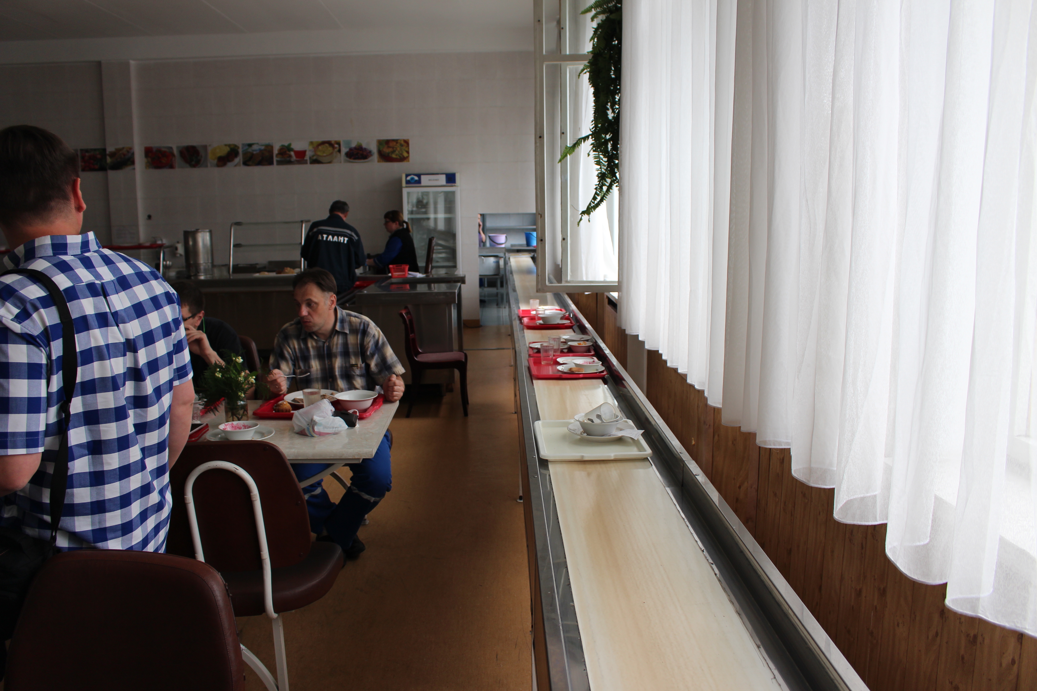 В столовой конвейер принимающий посуду и всю мебель делали сами. Когда завод строился изначально по проекту из главного корпуса до блока всех цехов можно было добраться по галереям не выходя на улицу. Эта идея реализована на 80%.