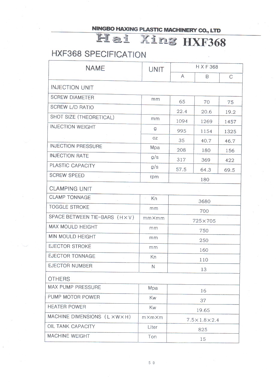 - усилие смыкания 368 тонн