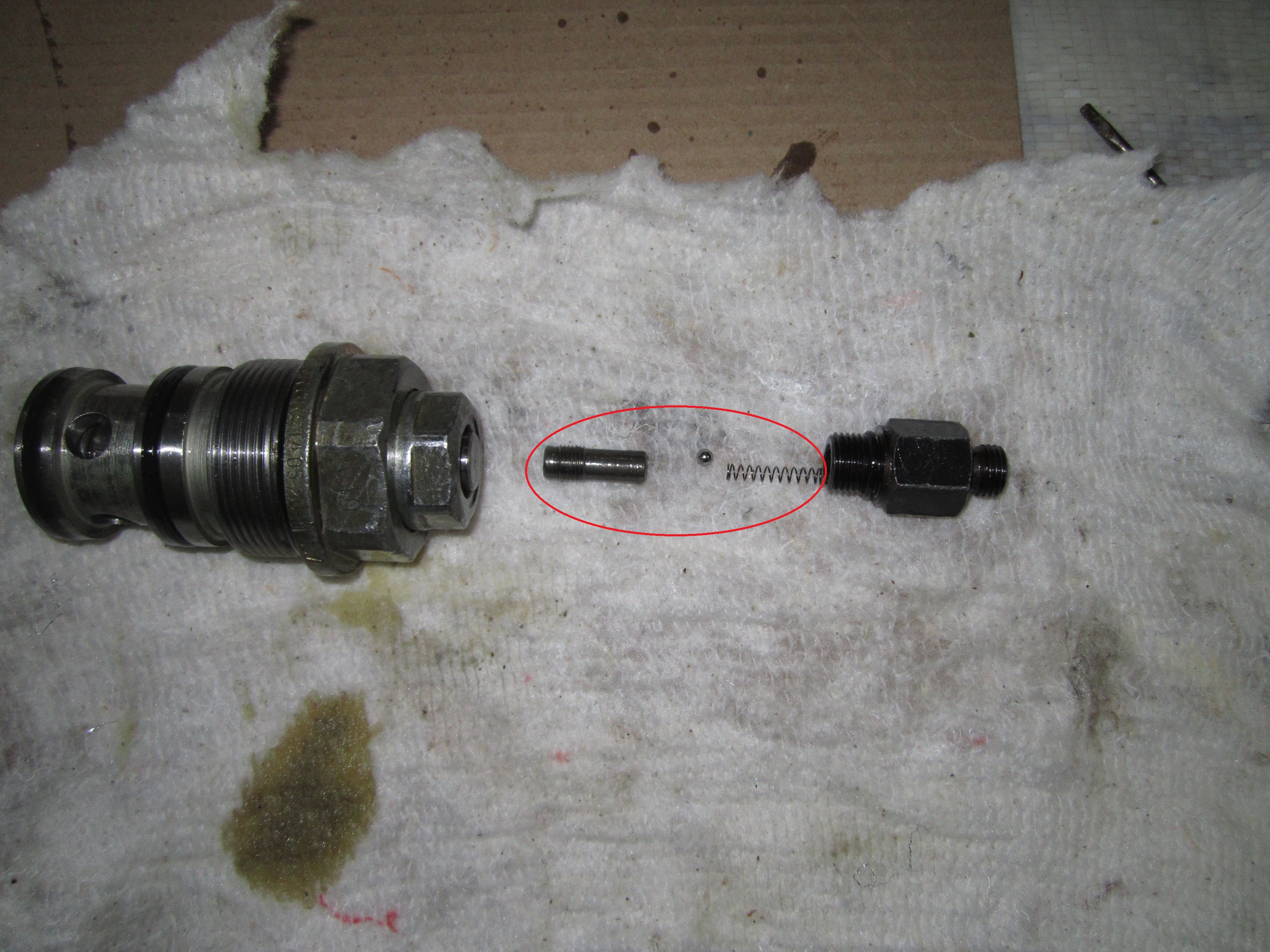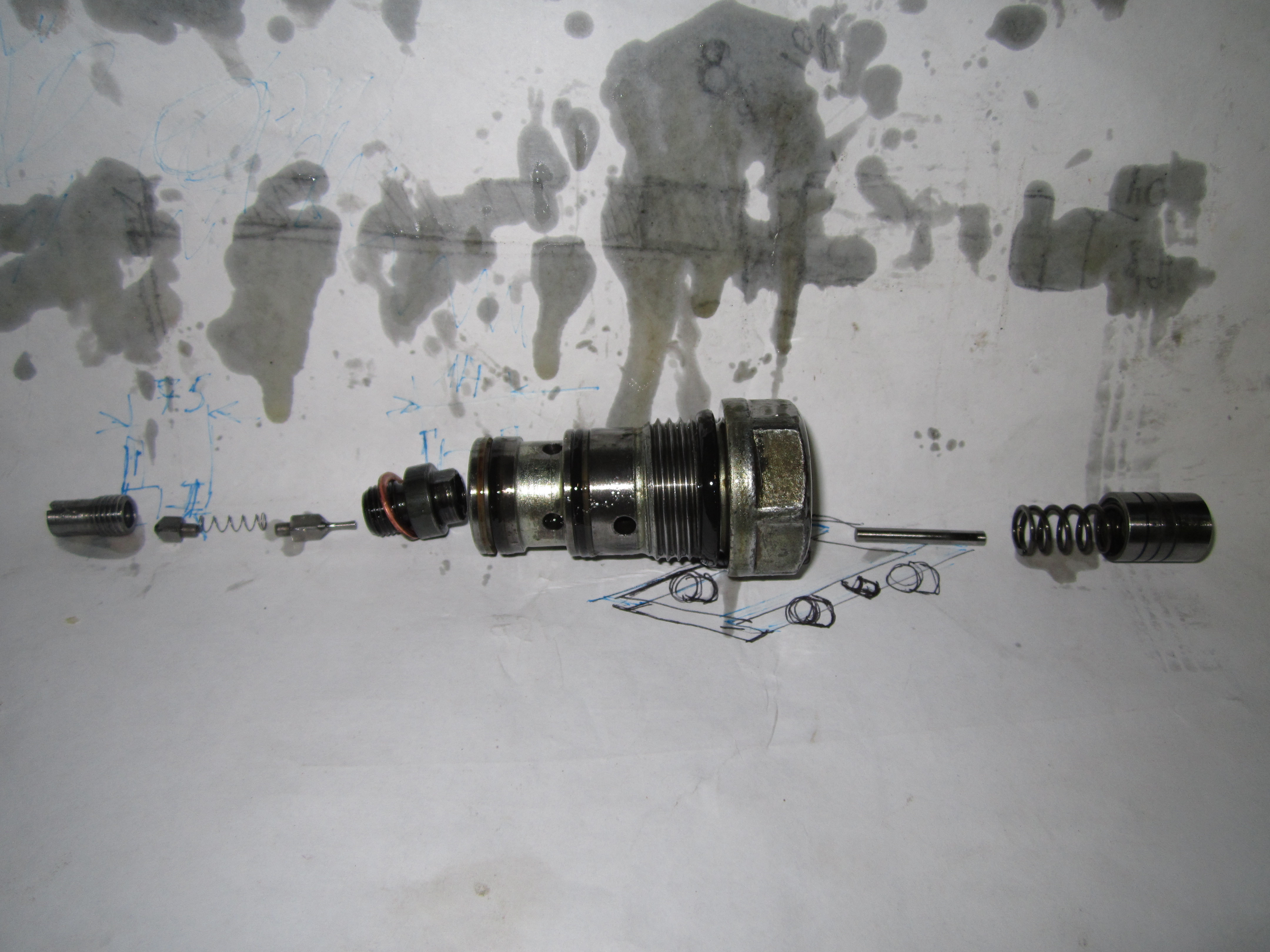 добрый вечер всем.Огромное спасибо что отвечаете,в связи с общим упадком производства упало и образованность ремонтников.обсудить даже не с кем.Вопрос решен.Спасибо мулланур.Но чудо тоже присутствует..С утра разобрал клапан. все должно работать.Посмотрел еще раз схему и поискал по вопросу Мулланур дроссель на входе управляющего давления.Дросселя нет,есть шарик с пружинкой,я туда только один раз залазил.Аккуратно разобрал.Узел заводской,на фото выложил как было.Похоже рацуха какая то.Сегодня еще раз разобрал,когда дроссель искал,насторожило на вворачивающемся столбике набитый радиус,хотя шарик с другой стороны был,переставил шарик он в пружину до половины провалился.Как я думаю кто то разбирал узел и посеяв шарик поставил меньшего диаметра,подогнув верхний виток,когда у меня вышибло внутри клапана внутренности давлением шарик вниз продавило,ну никак больше не обьяснить как он перед пружиной очутился.Поставил другой шарик все заработало