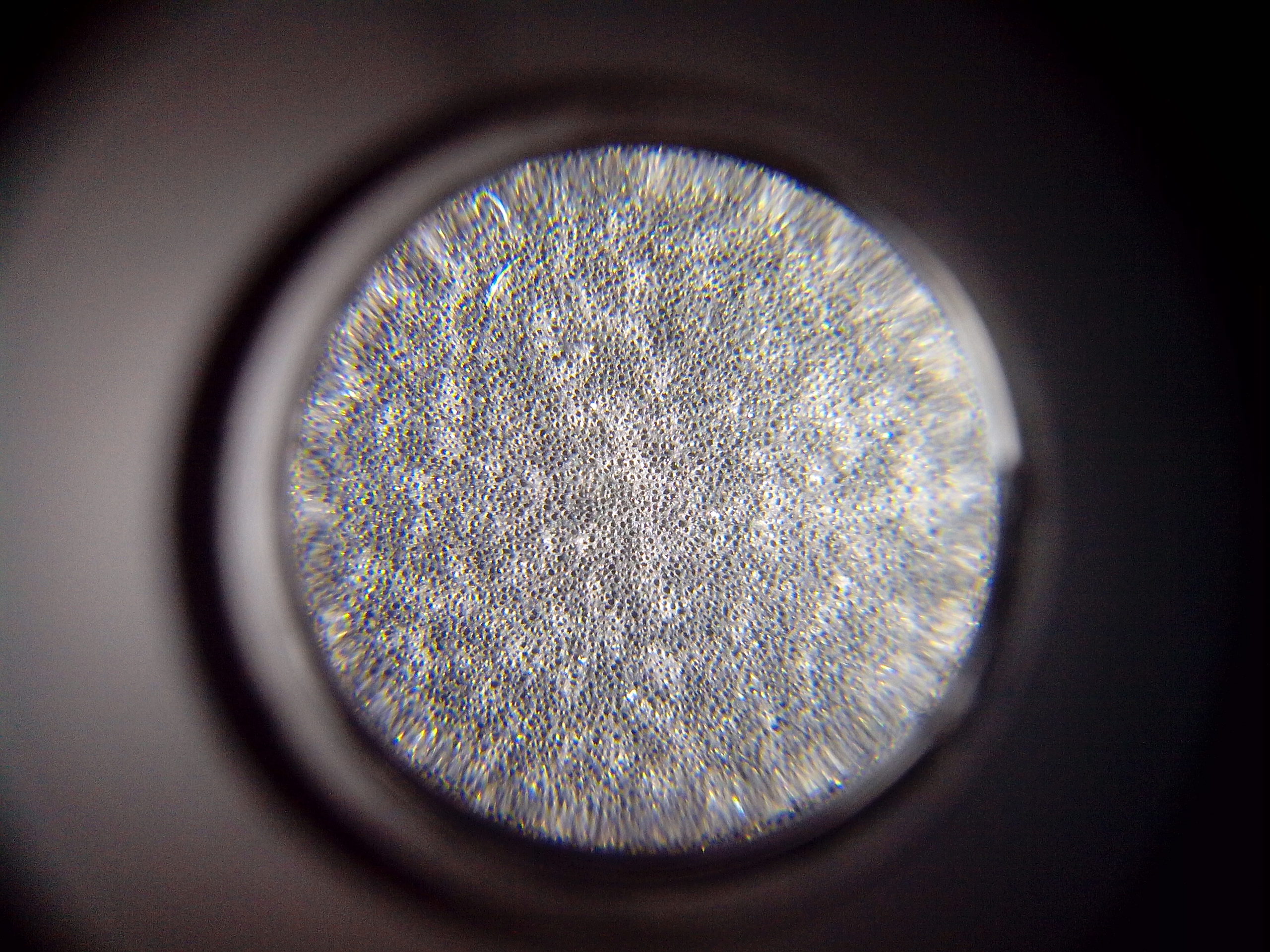 Искожа без увеличения. Увеличение ручным микроскопом 30х80 (справа на первом фото ) Увеличение ручным микроскопом 50х100 ( слева на первом фото ) Хорошо видны поры. Так же удобно рассматривать волокна на тканном или нетканном полотне. влаговпитывающие лотки для мяса и т.д.