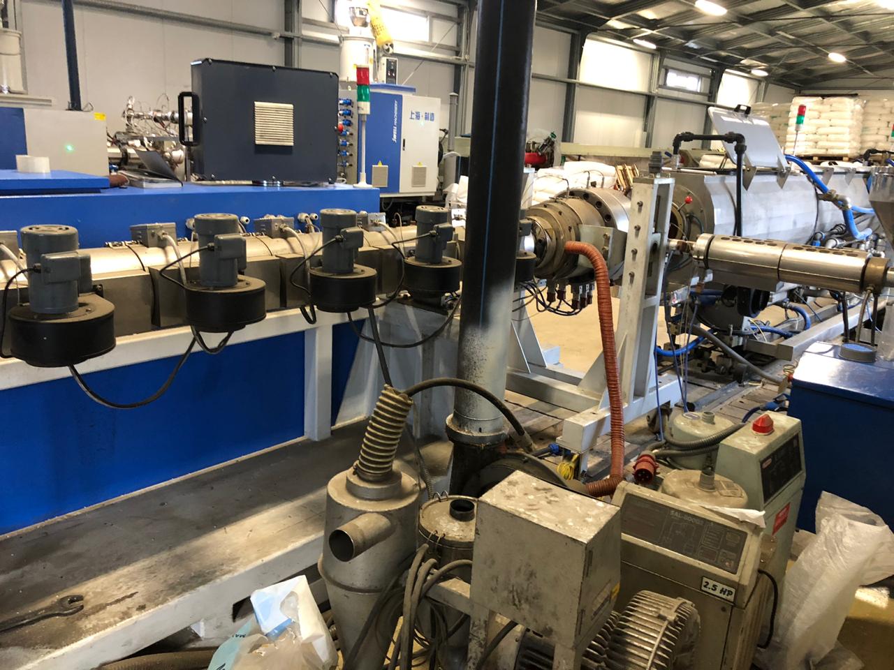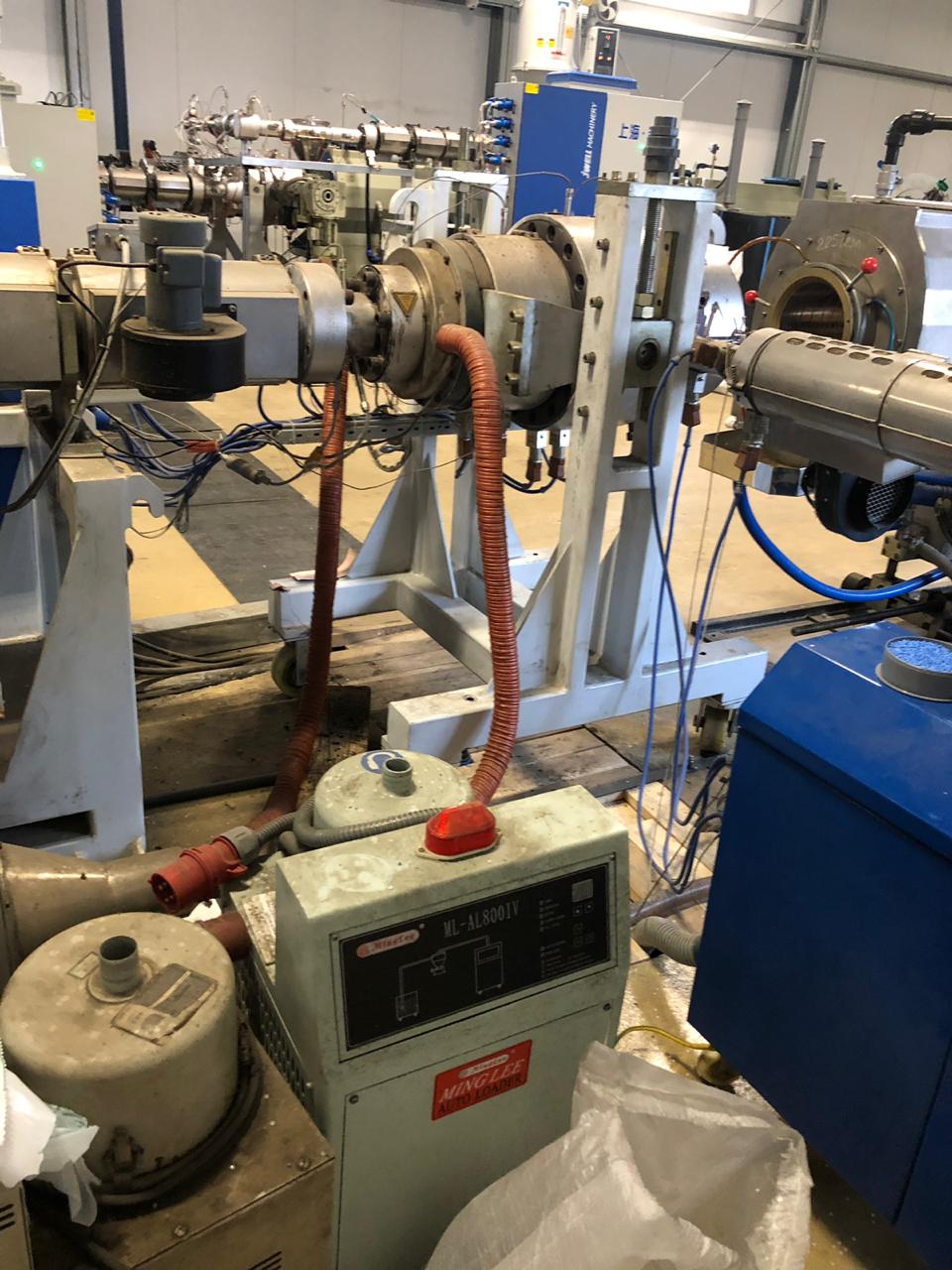 В комплект входит основной экструдер 80/34, ко-экструдер, гравиметрия Inoex , бункер на 300 кг, автозагрузчик, головка с вытяжкой воздуха изнутри.
