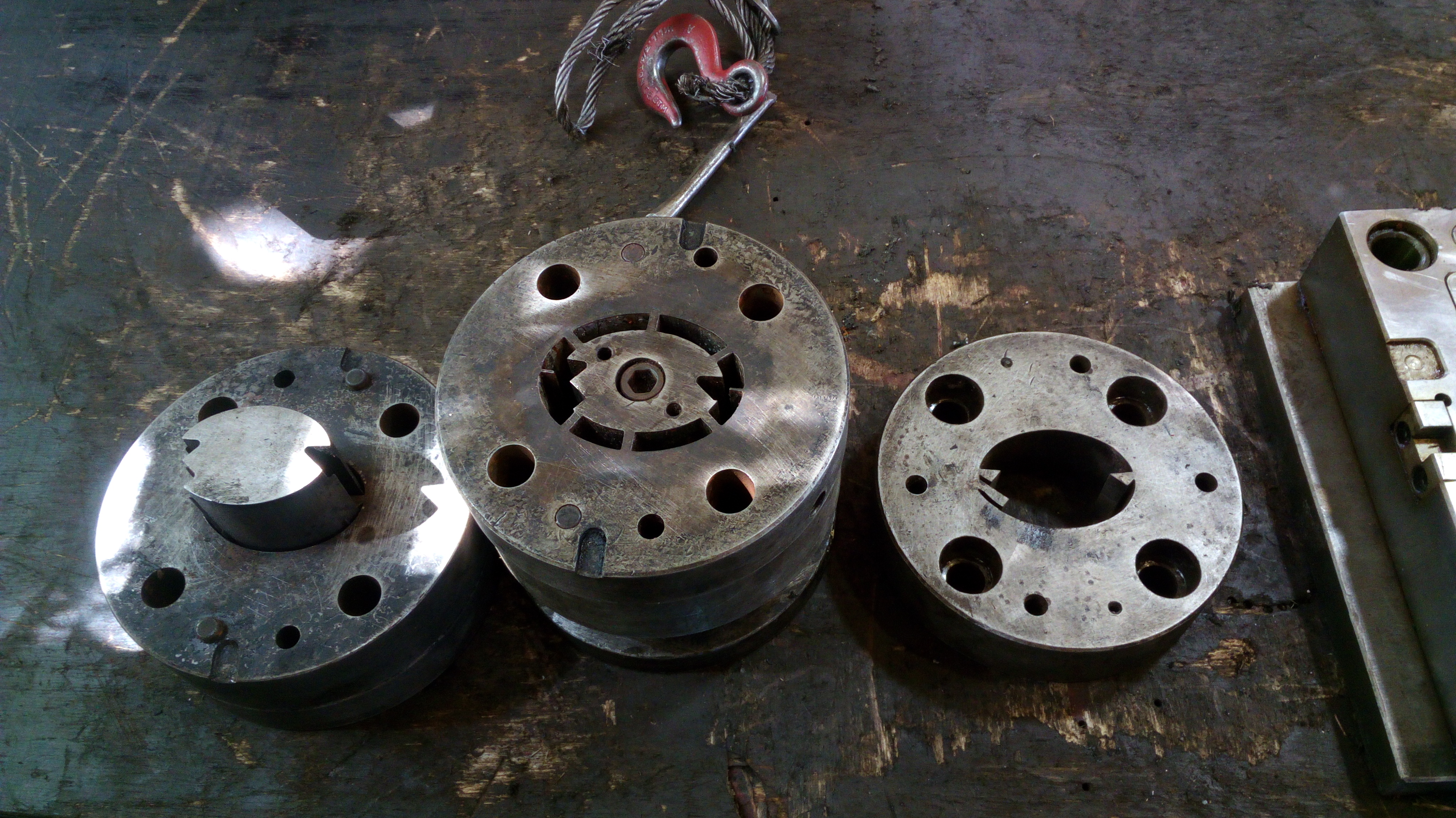 Здравствуйте. Надо привести в рабочее состояние фильеру и калибраторы. Прикрепил фото экструзионной головки и калибратора, до и после пожара, чертеж и фото изделий, которые на них надо делать. Чугунные части целы, алюминиевые накладки калибратора со штуцерами, трубками и каналами сгорели. Возможно ли их отремонтировать и кто это может сделать?