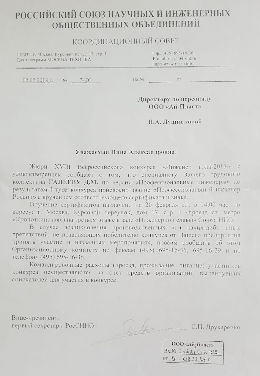 Re: Инженер года