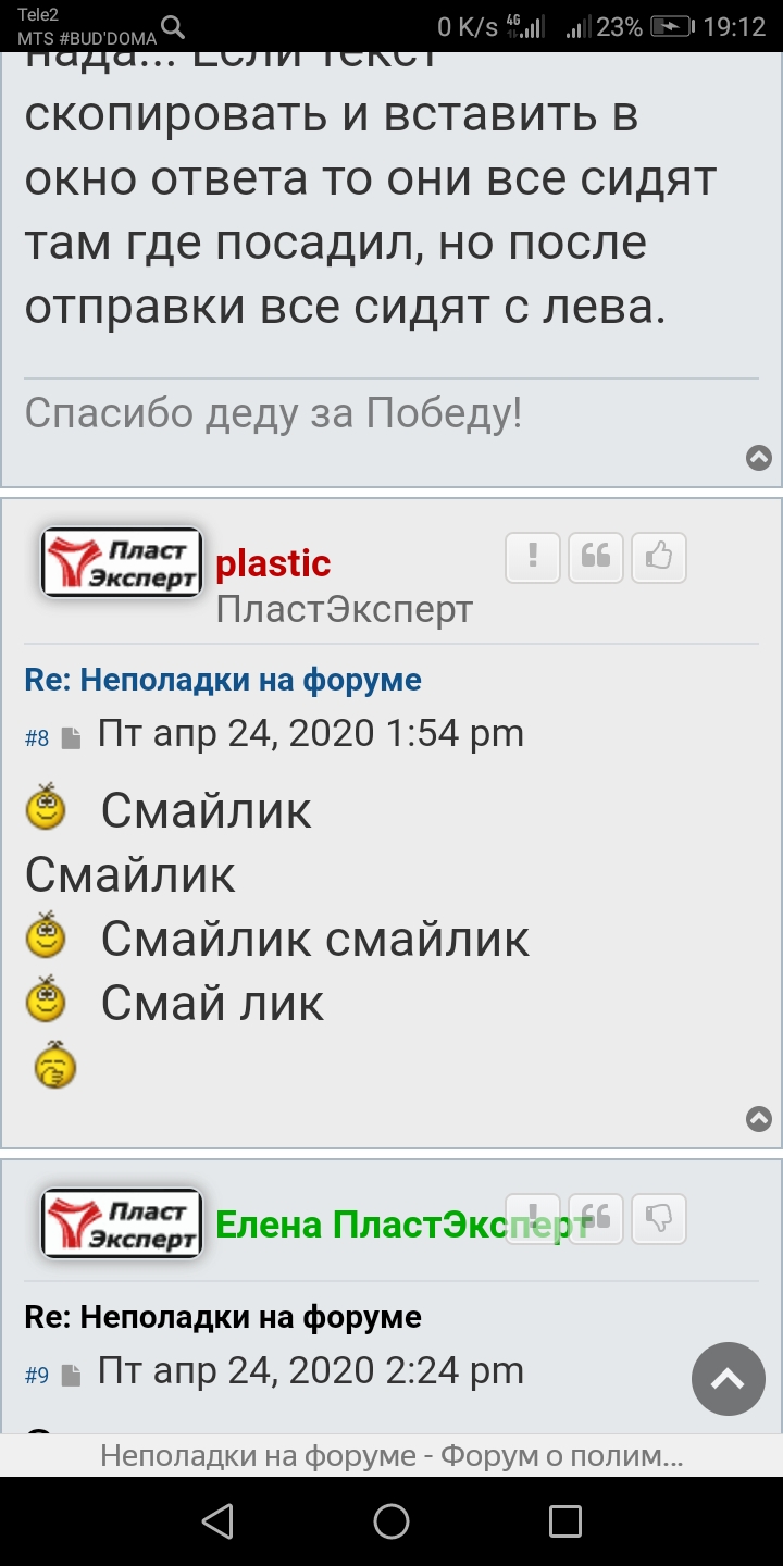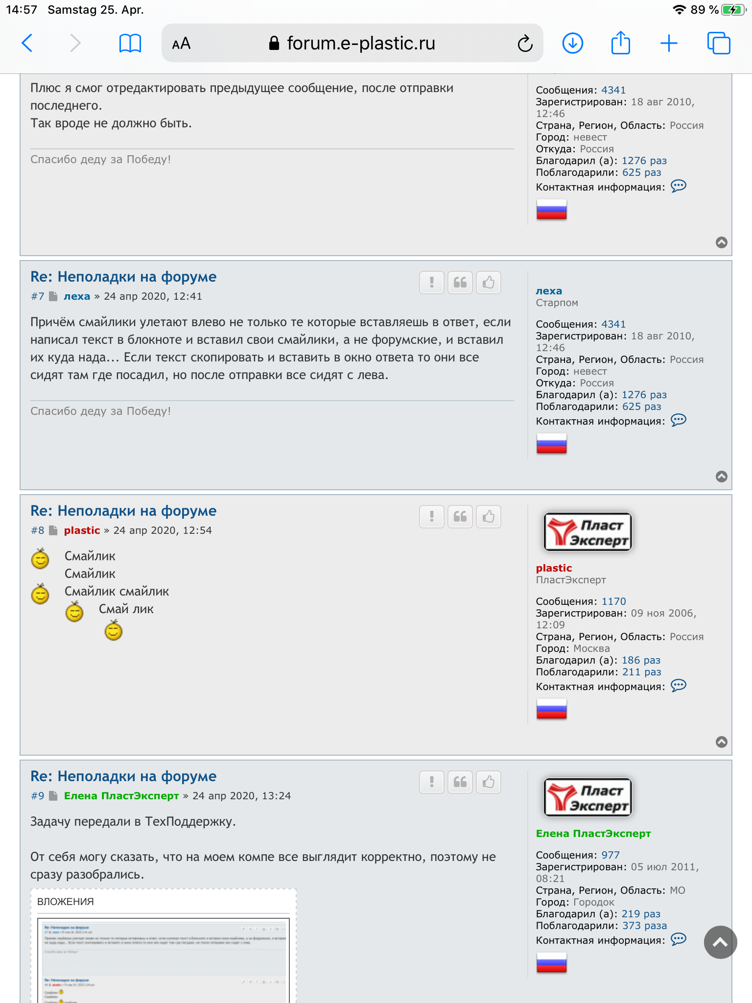 Последнее время почти все цитируемое на форуме выглядит так (и почти у всех). Обратите внимание на [ в конце цитатыЕлена ПластЭксперт писал(а): ↑16 окт 2020, 08:58Ваша жалоба принята и будет передана в техподдержку.