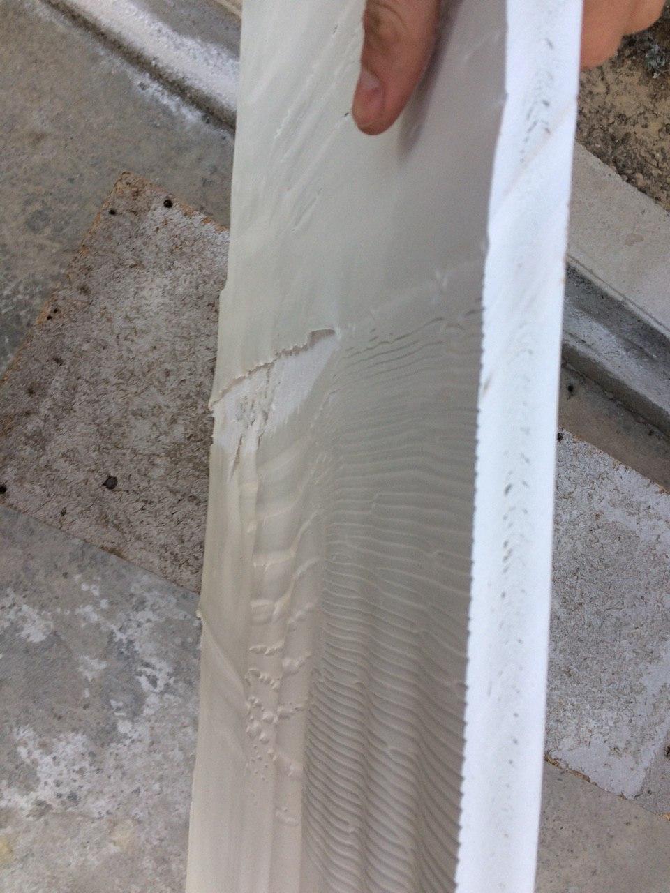 Сколько даёте в этот лист вспенивателя? Какие температуры по цилиндру и по фильера? После фильеры сразу калибратор? Первое впечатление,если лист сильно увеличивается, как у вас на фото, много в рецепте АДК, вспенивателя. И дайте температуры,по цилиндру и фильера, когда лист был в размере. И да, чем подробнее будете писать ответы, тем больше будет ясность в понимании вашей проблемы.