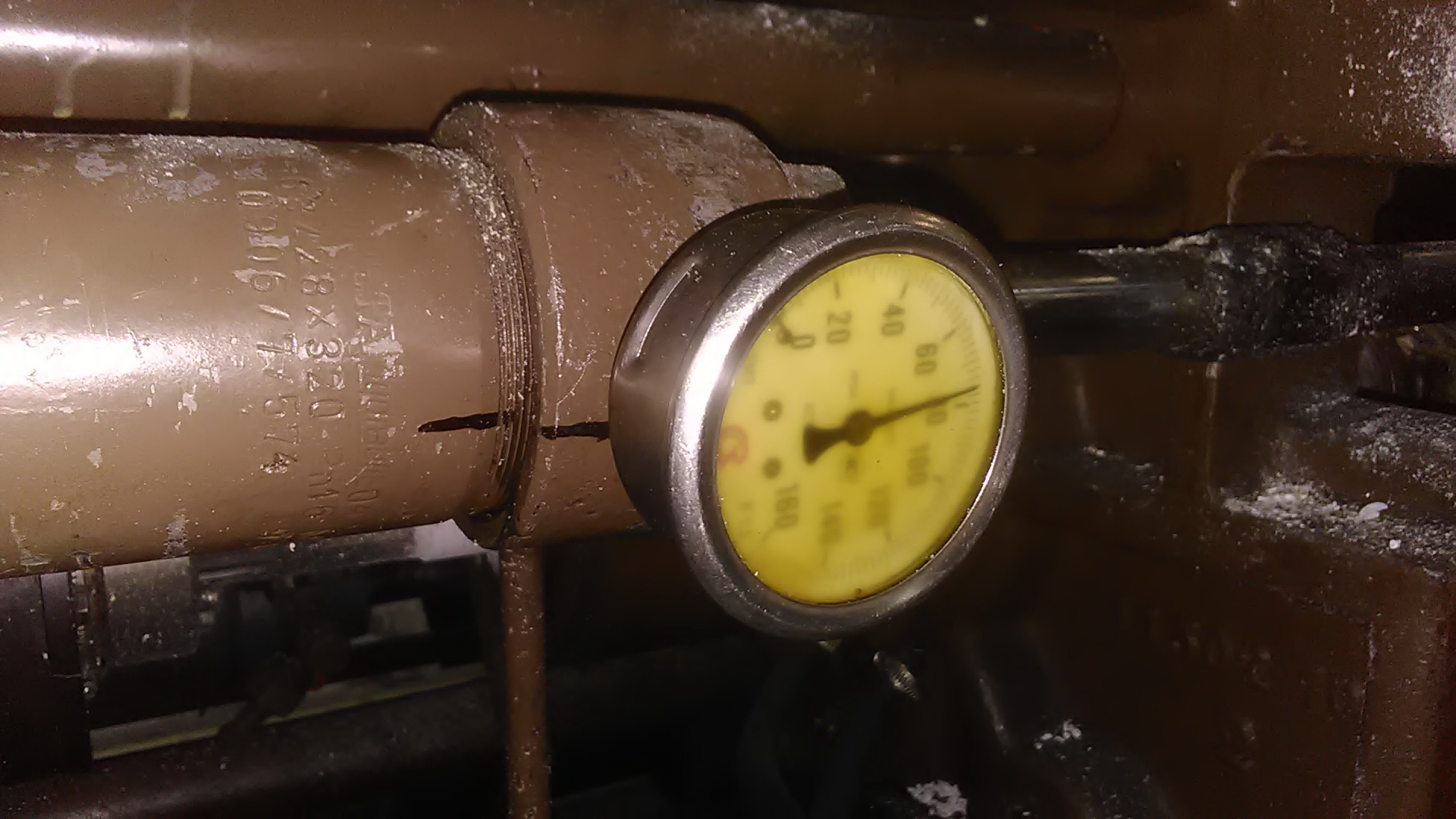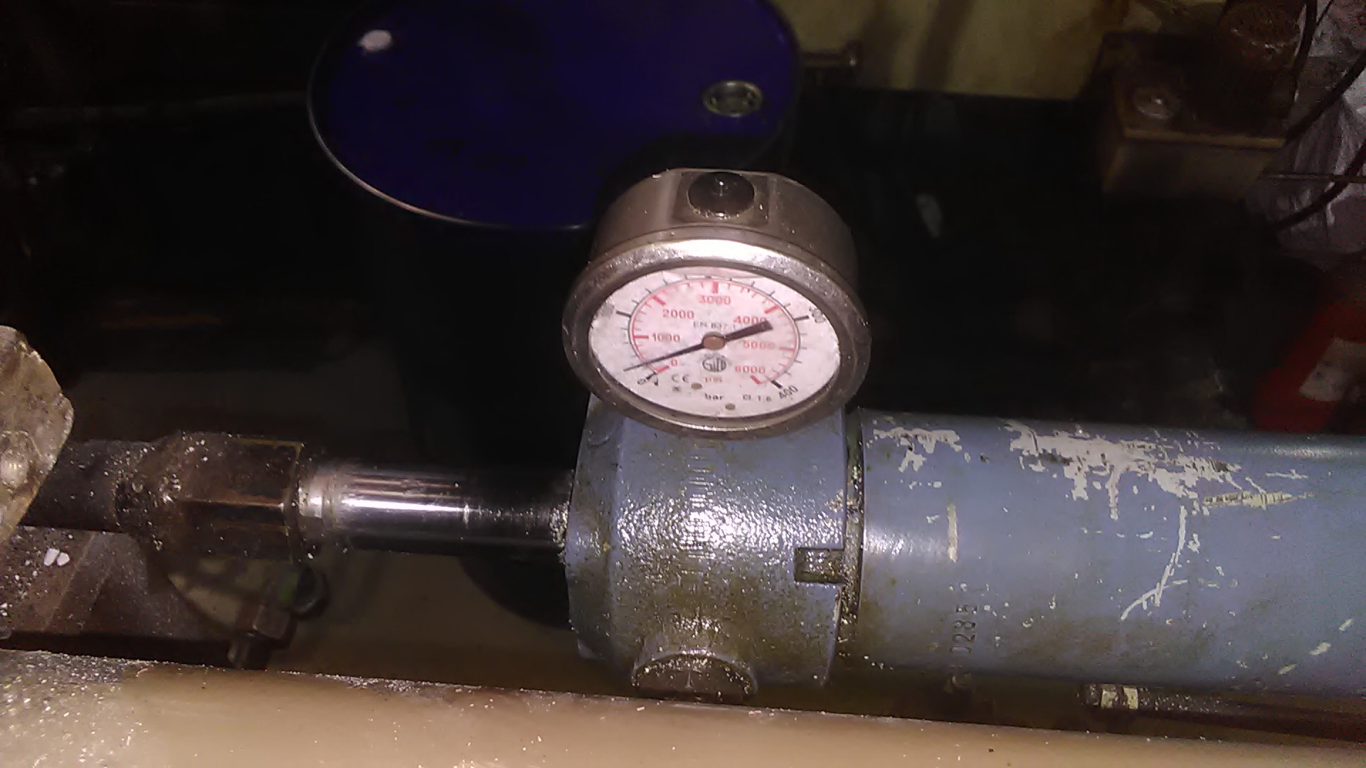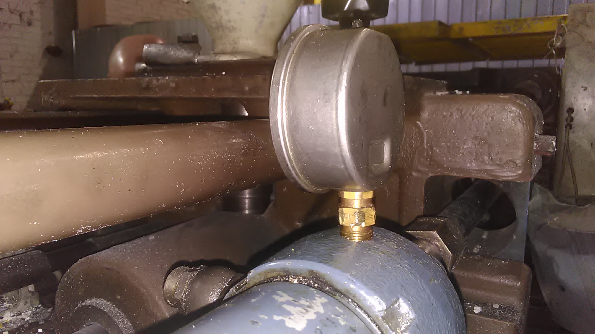 Врезали манометры. ФОТО. В штоковую полость прижима сопла. Теперь от начала впрыска до конца набора материала хорошо видно силу прижима сопла. Восстановили работоспособность двух В 502. На первой машине после прижима сопла в наладке, даже выключили гидравлику. Ушли курить. Пришли. Давление как было 100 атм. Так и замерло. Значит, гидрозамок и поршня цилиндров в идеале. Запустили в работу. Все под контролем. На второй машине манометр сразу показал, что к концу набора давление в цилиндре прижима сопла остается 10 атм. То есть со 100 атм, нами установленными, падает до 10-ти атм. Гидрозамок рабочий. Значит цилиндры в ремонт на замену манжетов поршней. Очень удобно, проходя мимо видно всю динамику.
