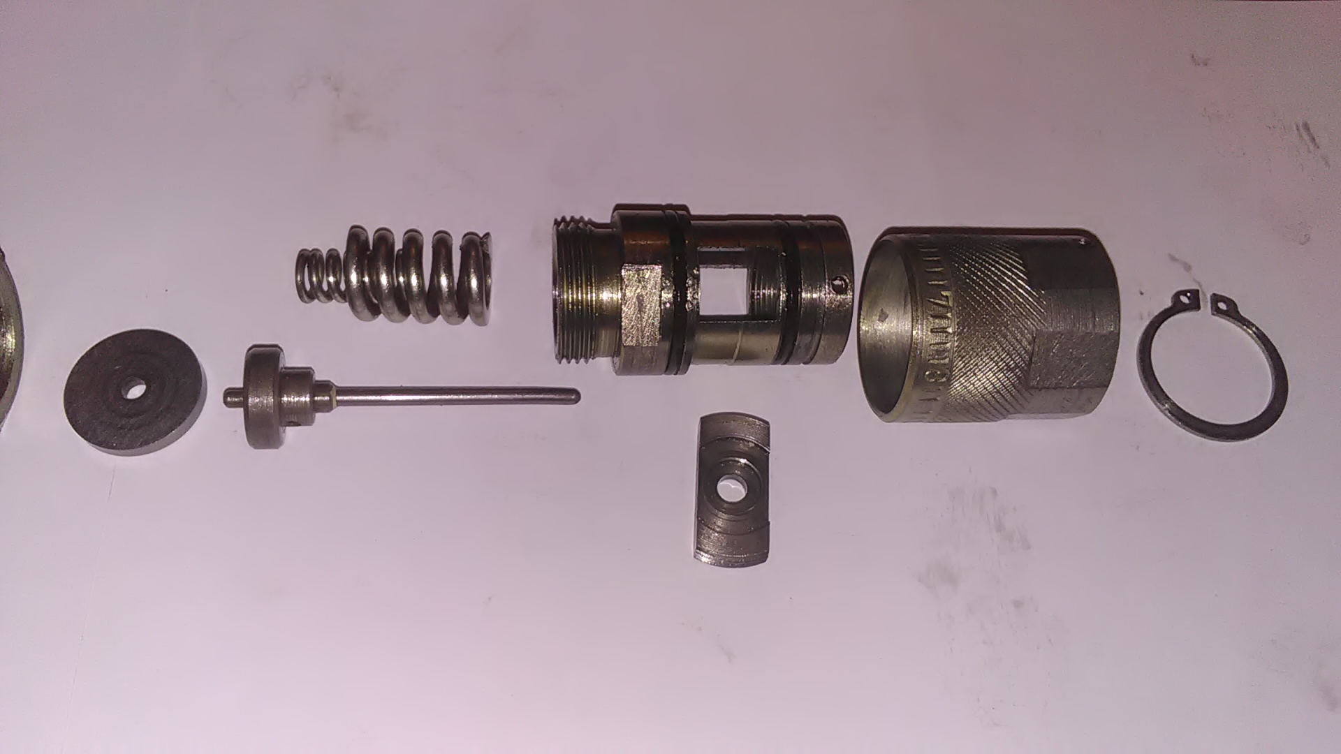 Игла имеет длинную часть которая запрессована в пятак с ПИПКОЙ, короткая часть слева от пятака опорного пружин) Шайба с отверстием толщиной 3,5 мм стоит как на фото. Короткий конец выступает за пределы шайбы 0,3 мм.