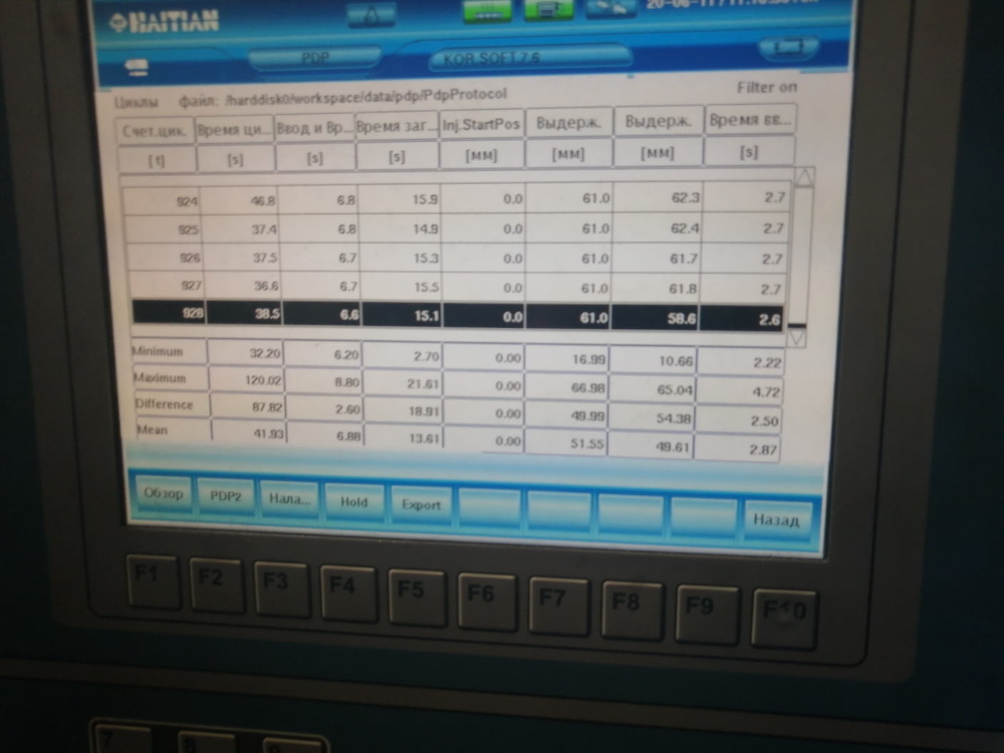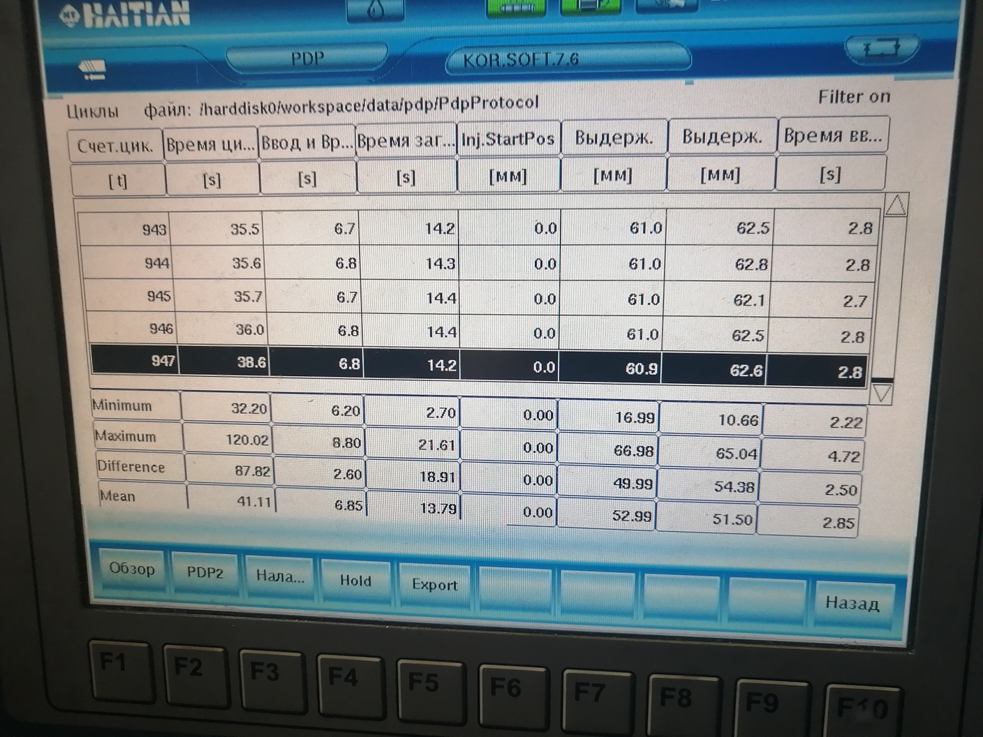 Сейчас пытались наладить и запустить изделие из ПВД 122 (в гранулах, первичка), которая льется на аналогичной машине. Тоже 50х50 недолив, но данные в таблице изменились. "Плавает" загрузка, выдержка (во вложениях).