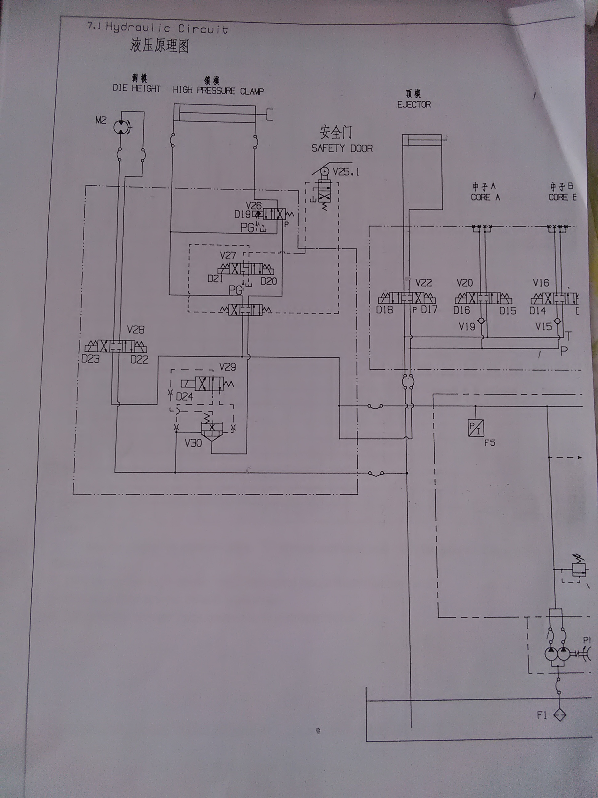 Фото блока смыкания размыкания щелкните на всякий случай. В практике был случай, когда в седельном двух линейном клапане вывернулся жиклер, нарушился перепад давления и поршень клапана постепенно садился на закрытие , хотя он должен быть открыт. И слива при закрытии плиты из штоковой полости цилиндра смыкания почти не было. Еле полза плита на закрытие. Не хочу путать. Но при данных вашего случая приходит мысль о неисправности в системе гидравлики. Показания манометра? Ещё мысль такая. Закрыть воду на бак. Прогреть масло до 50 градусов, поработать, картина может изменится.