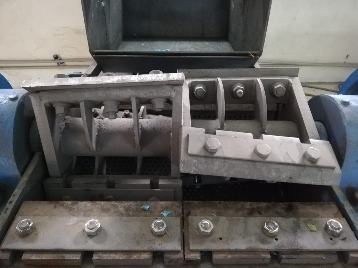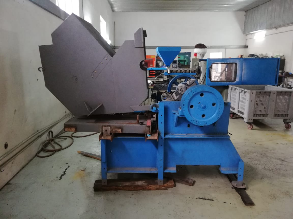 приобрели дробилку. дробим полигон (канистра, трубы) в основном пнд. стоит 2 валковый шредер за ним дробилка.