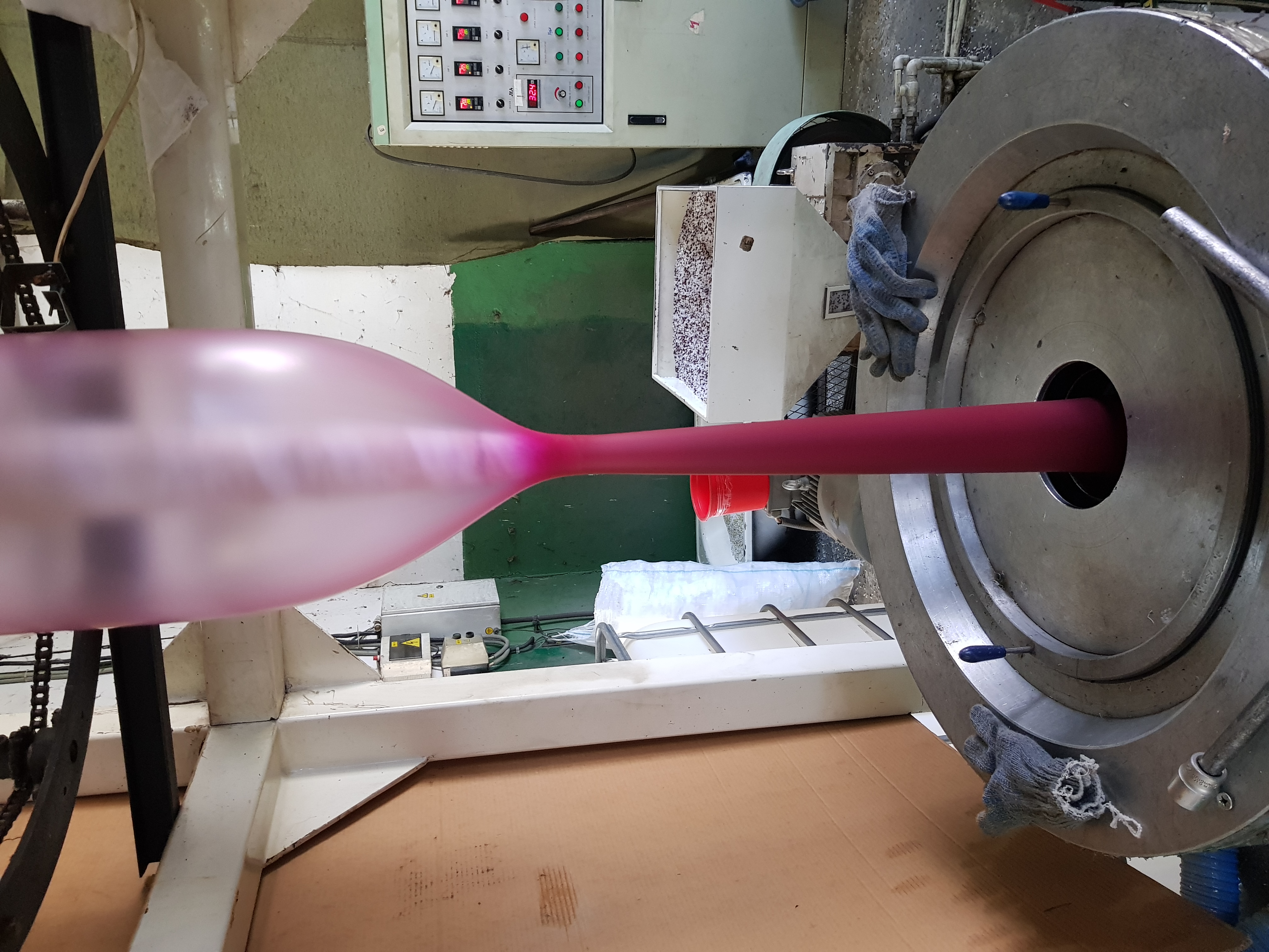 Эти молекулы вытягиваются вдоль вытяжки постоянно до застывания плёнки, Развернуть их нужно резко и заморозить. Резко это коэффициент раздува и форма шарика. К раздува не изменён но стабилизатор имеет форму конуса. Если раздуваем с нижней части и с верхней то согласитесь что к раздува будет разным. Далее форма шарика может быть в форме шарика и в форме конуса и скорость разворота молекул будет различная при постоянной скорости разворота молекул в продольной направлении.