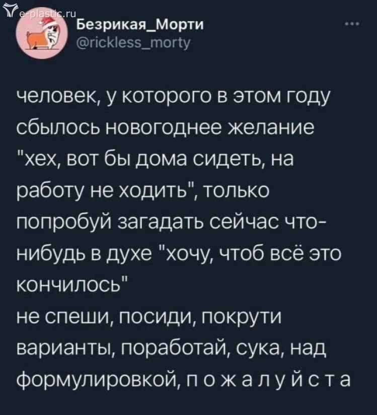 Хотим пожелать Вам, что в следующем году Вас ждали более приятные вызовы, а приспосабливаться пришлось уже к предыдущей реальности.