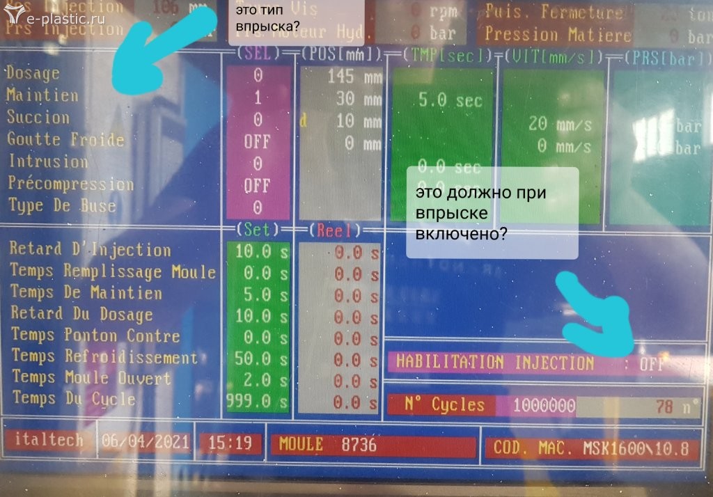 $ 3 вопрос.... я это никогда не видел на ITALTECH... может быть это "пустой цикл"... для проверки формы в автоматическом но без впрыска... я бы включил