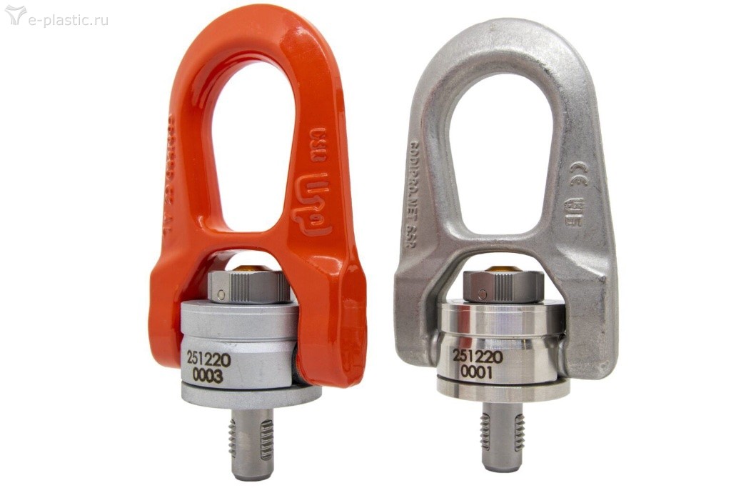 Особое внимание было уделено выбору цвета, что является сигналом безопасности. Продукция стандартно окрашивается в красный цвет (RAL 2002), этот цвет является уникальным и, таким образом, характеризует марку качества Codipro. Подъемное оборудование может быть загружено во всех направлениях и поэтому подходит для подъемных операций в прямом, наклонном и 90 ° направлениях тяги, а также для любых вращательных движений под нагрузкой. Центрированные точки крепления состоят из двойного шарнира и скобы. Эта конструкция всегда гарантирует идеальное выравнивание в направлении тяги и позволяет компонентам поворачиваться на 360 ° и поворачиваться на 180 ° даже под нагрузкой. Это обеспечивает полную безопасность при каждом процессе подъема и исключает риск того, что он будет откручиваться сам по себе. Для сравнения: классические фиксированные рым-болты согласно DIN580 разрешены только для прямого направления тяги, поэтому подъемные операции с тяговым усилием 90 ° запрещены. Эти подъемные устройства также являются жесткими и не выравниваются в направлении груза при подъеме, что может привести к ослаблению и отвинчиванию кольцевого винта.
