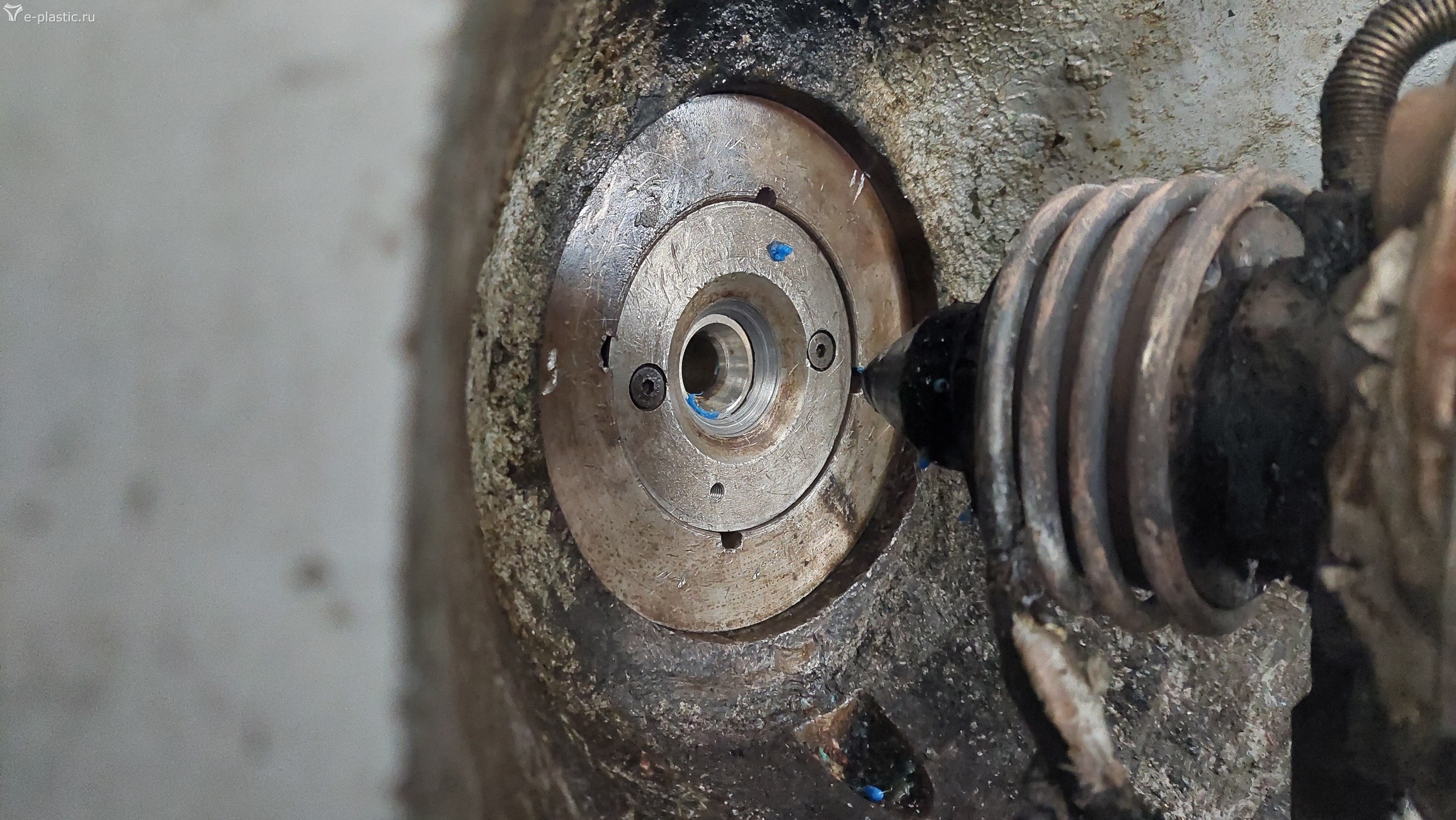 2) Если в конце впрыска есть движения материального цилиндра, а коретка жестко стоит, тогда нужно посмотреть не открутилась ли гайка которая фиксирует материальный цилиндр в каретке узла впрыска.