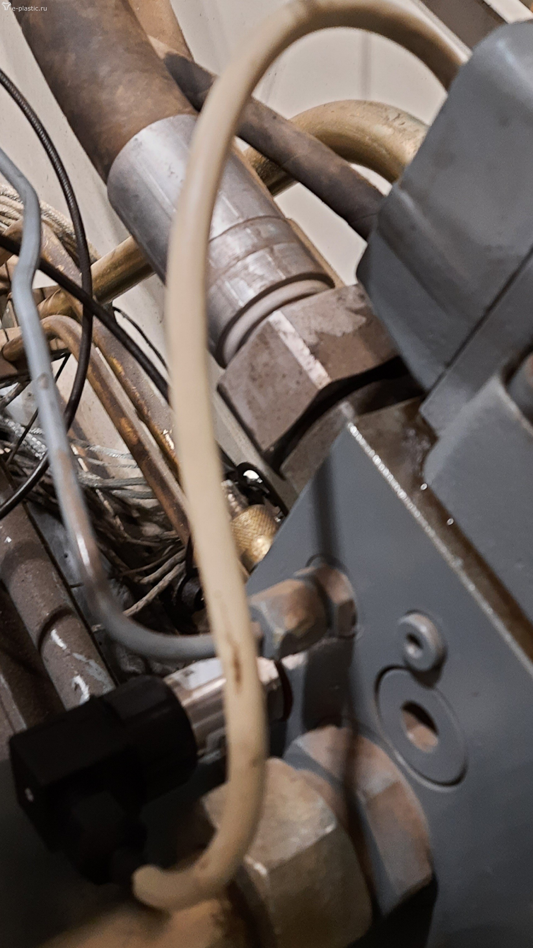 Дело в том что машина перестала сбрасывать давление впрыска. В автомате, в ручном впрыске или в наладке без кручения , всегда давление в мат цилиндре. Даже при выключенном моторе. Естественно набор дозы в отведённом состоянии происходит выливанием материала из сопла . Впрыск очень шумный и хаотичный . Просто с грохотом . Первое на что подумали клапан впрыск и набора. Был в наличии. Замена ничего не дала.