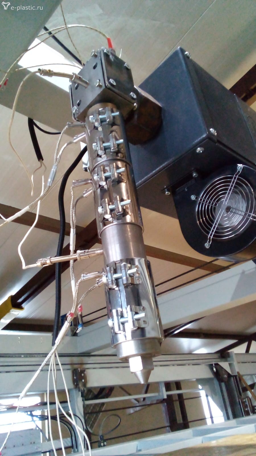 Прикрутили переход для подачи экструдата вертикально вниз.