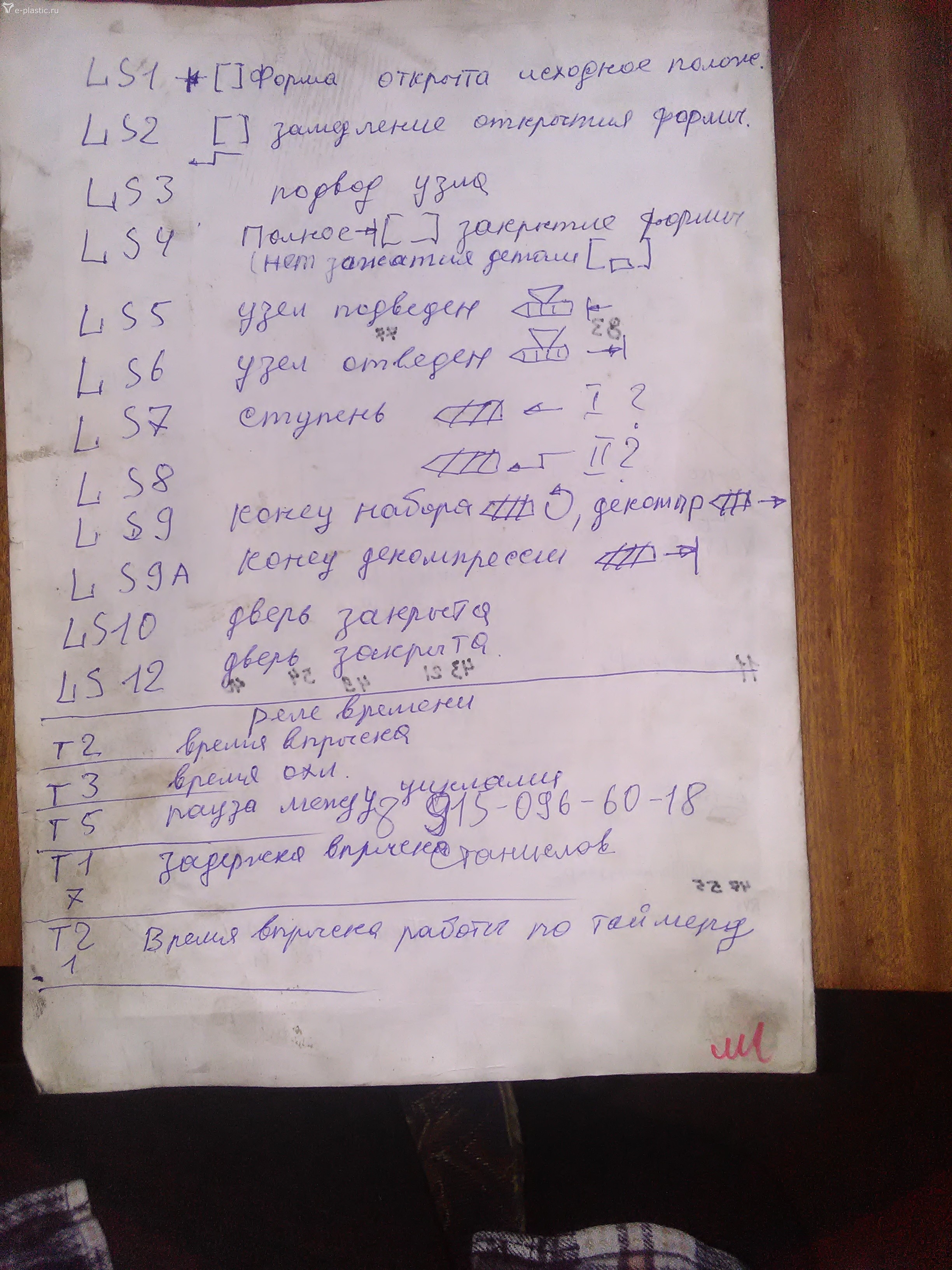 Версия, мелкое нарушение в работе последовательности ( обведено кружком) Будем проверять. Соль в том что У 18 закрытие чашек двух обратных клапанов должно произойти когда включен У 34 при полном закрытии формы выключенной защитой формы У 14 по в к LS4 далее поднять кулачек PS замкнуть средний правый мкв отключить У 34 и включить У 35.Набор силы зажима. Отключить У 34. У нас же происходит одновременное закрытие чашек и набора силы зажима. То есть У 18 включается вместе с У 35. И кусок работы по возврату мультипликатора за бортом. Не думаю что кто то станет тут ломать голову, если только редкий знающий виндзор человек. Но этот момент должен правильно работать.