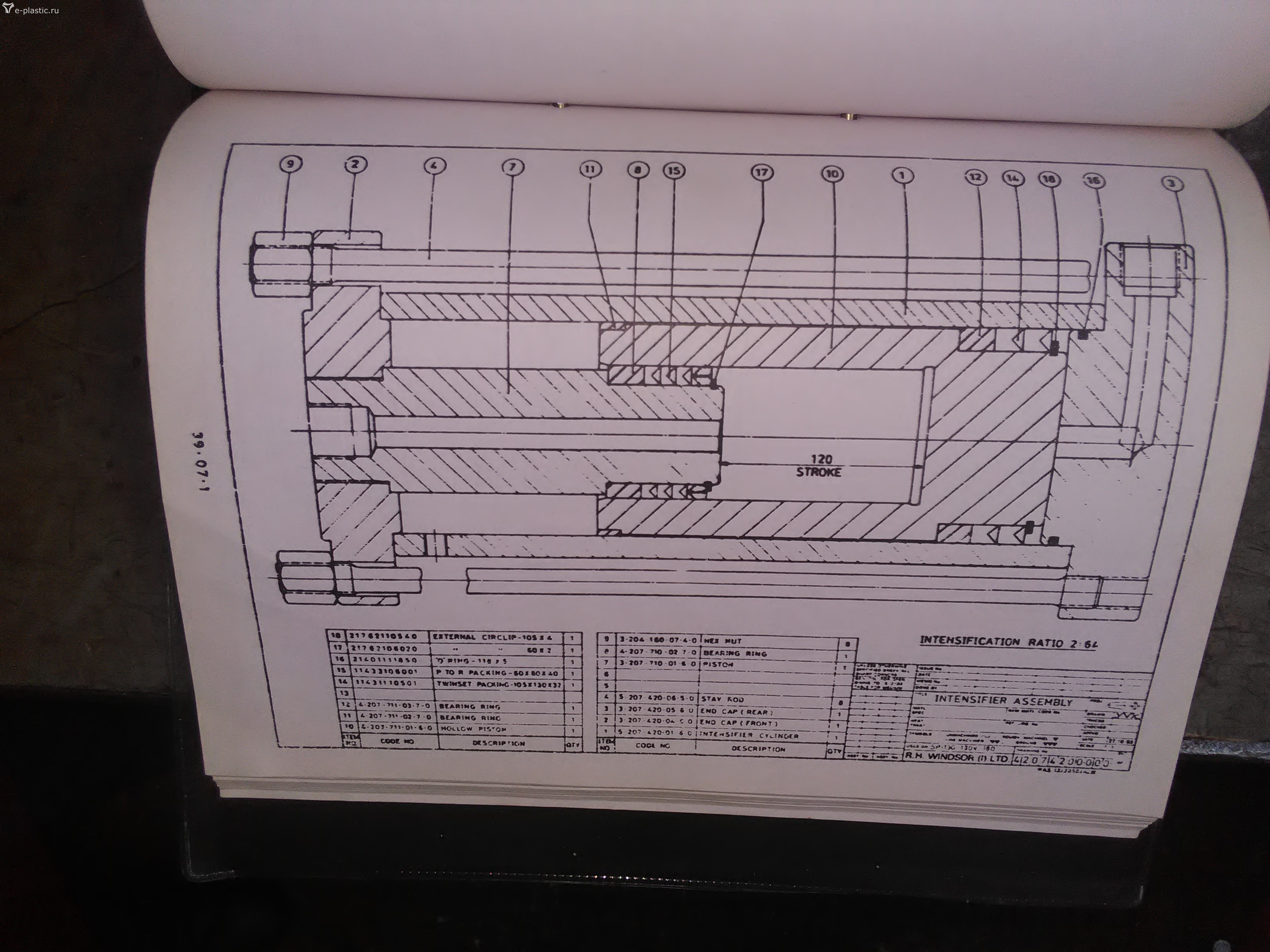 По поводу зарядки мультипликатора? В паспорте прописано при работе в режимах автомат, полуавтоматический мультик подзаряжается по окончании впрыска. Для экономии времени цикла. В ручном режиме, заряжается при движении на торможении и защите формы. Вот в этот момент и возможно не хватает усилия потока для движения плунжера мультика в исходное заднее положение. Будем обвешивать машину лампочками к фишкам и манометрами, на вход к реле давлению PS. И в нагнетающую трубу плунжера поршня мультипликатора. Просверлим уголок , штуцер, манометр. Предварительно переберем блок замка Y13 и Y 9. Ещё домыслы, На входе в обратный клапан CV4 создаётся сопротивление пружины и мультик пятиться назад- должен. Если сопротивления нет( поломка пружины) то и давление нет, так как полость цилиндра зажима открыта в верхний бак. Давление по нулям. Так опять вопрос в какой момент мультик заряжается в ручном режиме.???