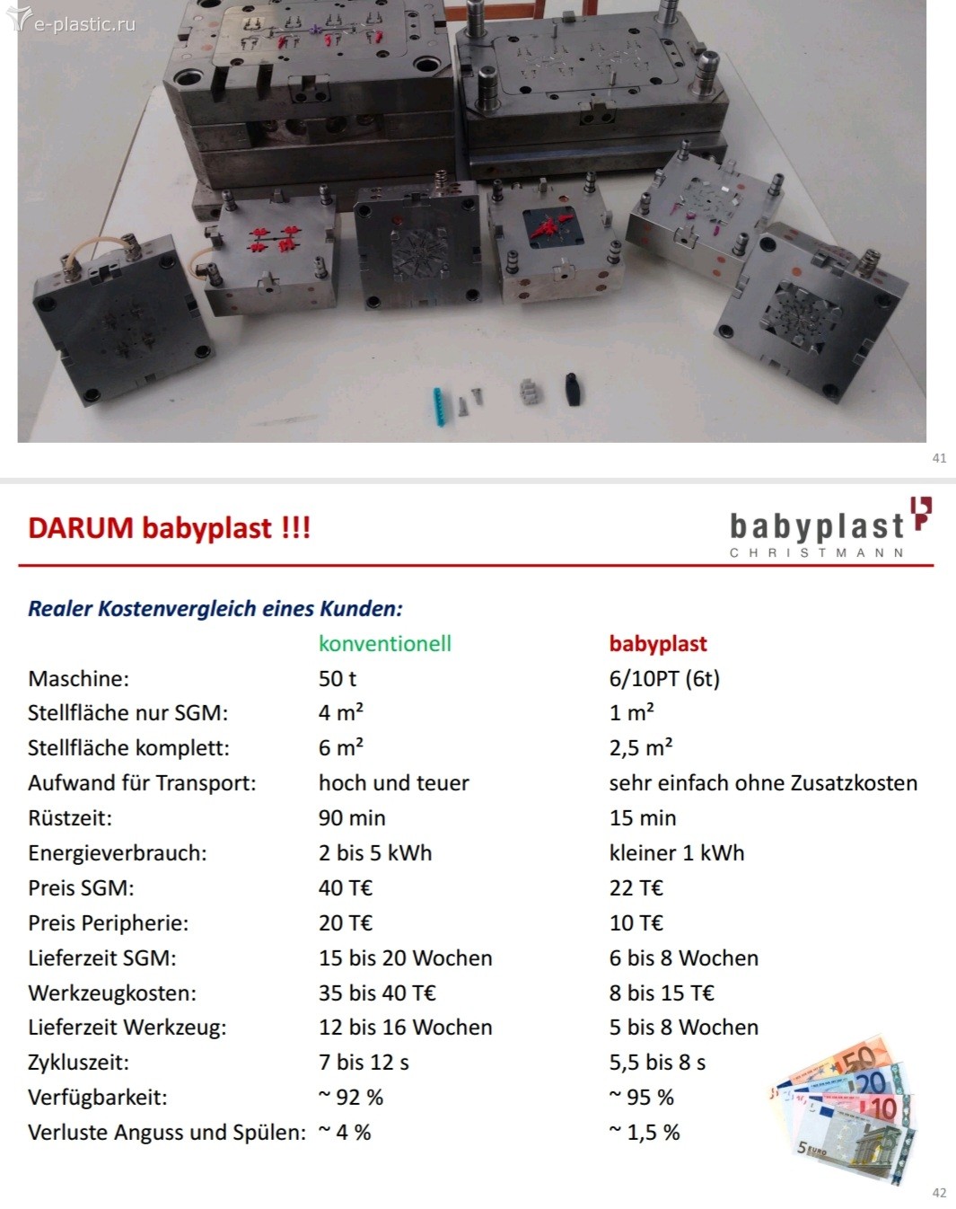 С комментарием Артур69 относительно Babyplast могу сказать следующее: "Красивая" - ОДНОЗНАЧНО!, "Дорогая" - всё в нашем мире относительно, "С ограниченными способностями" - должно быть вы плохо знаете способности Babyplast или задачи, для которых он предназначен... Уместно будет зафиксировать следующее: каждое оборудование предназначено для решения конкретных производственных задач!