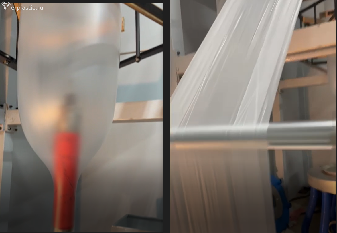 Осталось разобраться с настройками, на данный момент на пакетах много складок, увеличивали скорость подъёма - результат тот же. Пленка на верхний первый валик подходит уже со складками.