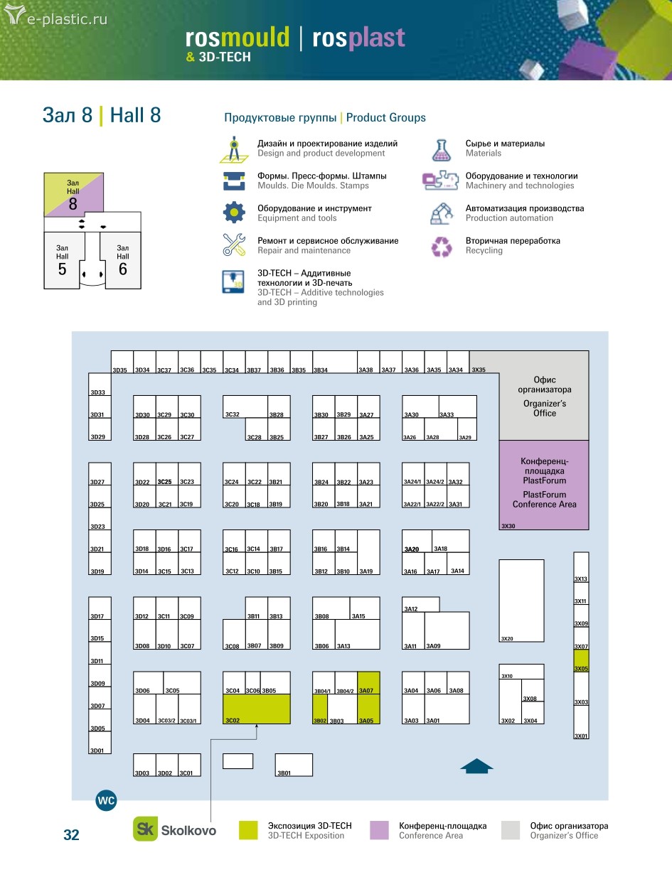 Специальная экспозиция «3D-TECH - Аддитивные технологии и 3D-печать» давно стала неотъемлемой частью выставки Rosmould, и сегодня она является крупнейшей профильной экспозицией в России, посвященной 3D-технологиям и аддитивному производству. Экспозиция расположится в 5-м и 8-м залах «Крокус Экспо»; среди ведущих разработчиков 3D-принтеров и расходных материалов для 3D-печати – коллективный стенд резидентов фонда «Сколково», где молодые компании и стартапы продемонстрируют профессиональным посетителям новейшее 3D-оборудование, системы 3D-сканирования, современные материалы и программное обеспечение. Здесь же будет располагаться коллективный стенд российских производителей из Санкт-Петербурга; крупнейшие интеграторы и центры АТ: 3D Vision, Cybercom, Lider 3D,Top 3D Group, SIU System, Syncam TopStanok, Фолипласт, ЦТКАТ и др.