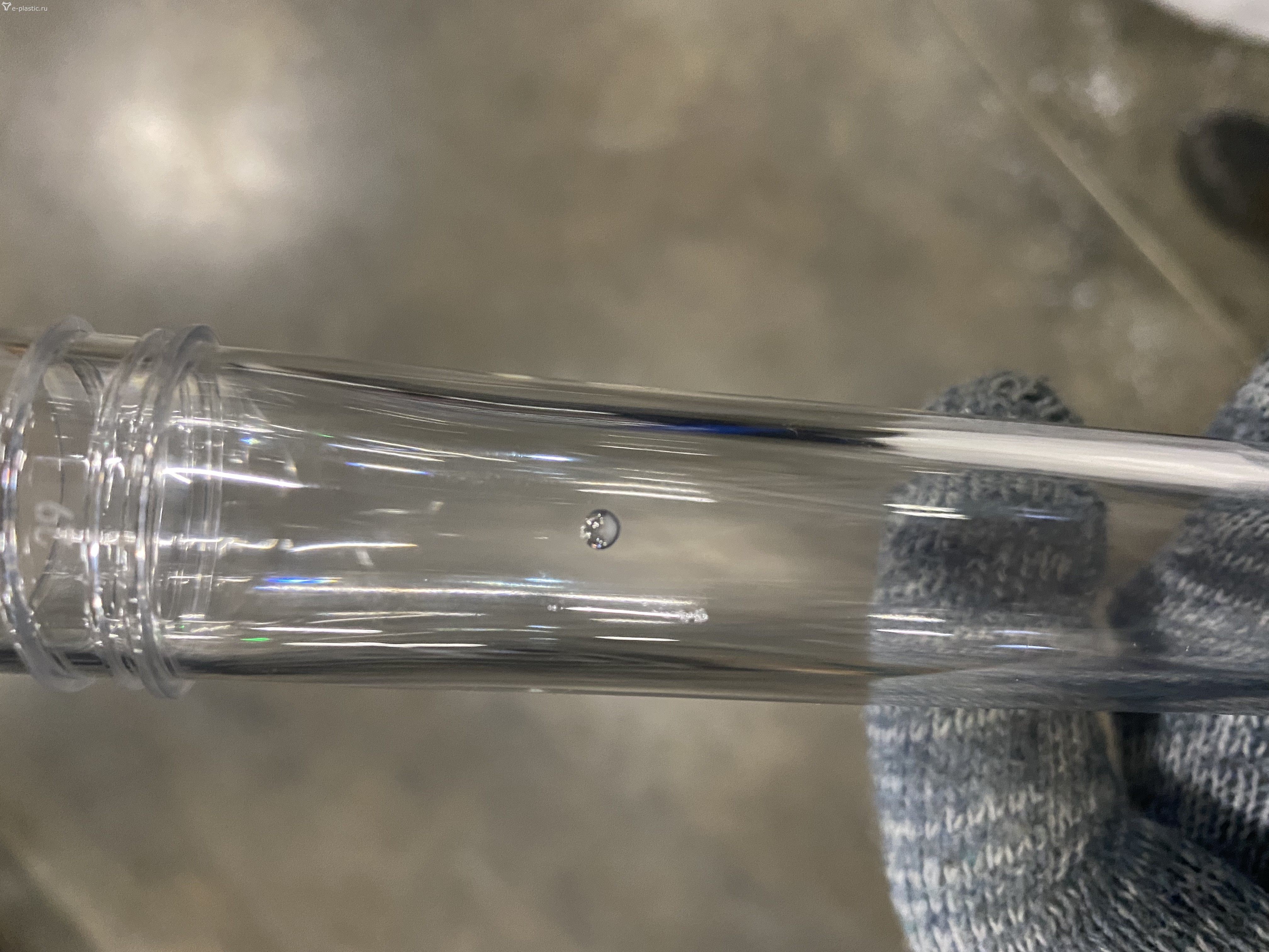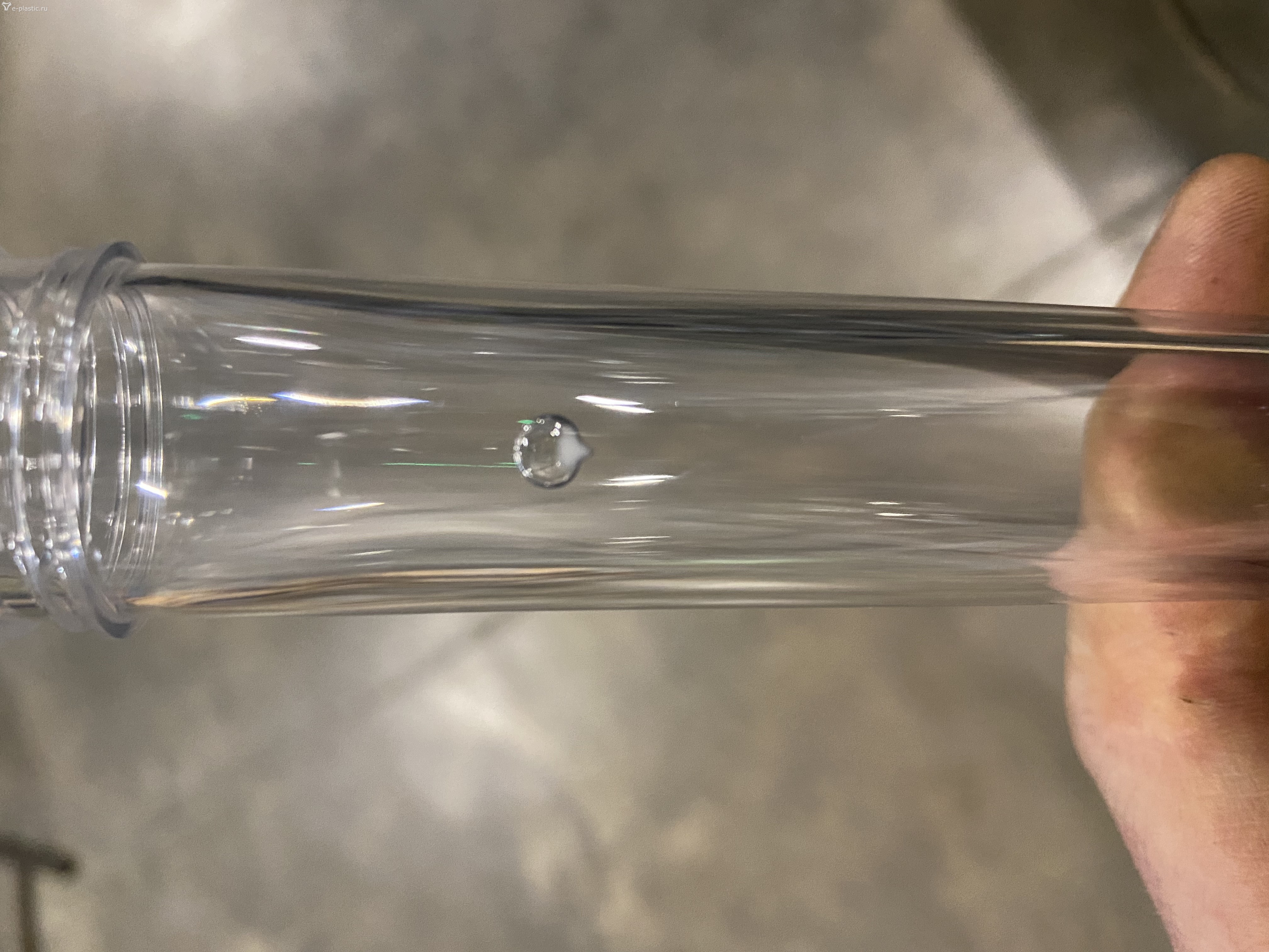 Газовый пузырь следствие термической деструкции из-за высокой температуры или длительного нахождения в материальном цилиндре. Может у вас так называемая вакуоль, то есть усадочная раковина. Встречается в толстостенных отливках. Суть в том, что при отсутствии подпитки на стадии выдержки происходит внутренняя усадка с образованием вакуумной полости.