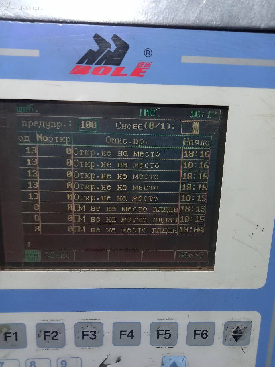 Первая ошибка: при открытии формы разница между текущей и заданной позициями останова больше установленного допуска. Причины: медленно (неправильно) работает гидравлика ; изношен соответствующий датчик ("линейка"); неправильно работает плата АЦП датчиков. С гидравликой - разобраться, плате АЦП (с контроллером) - профилактический ремонт (с чисткой). Можно попробовать увеличить допуск останова.