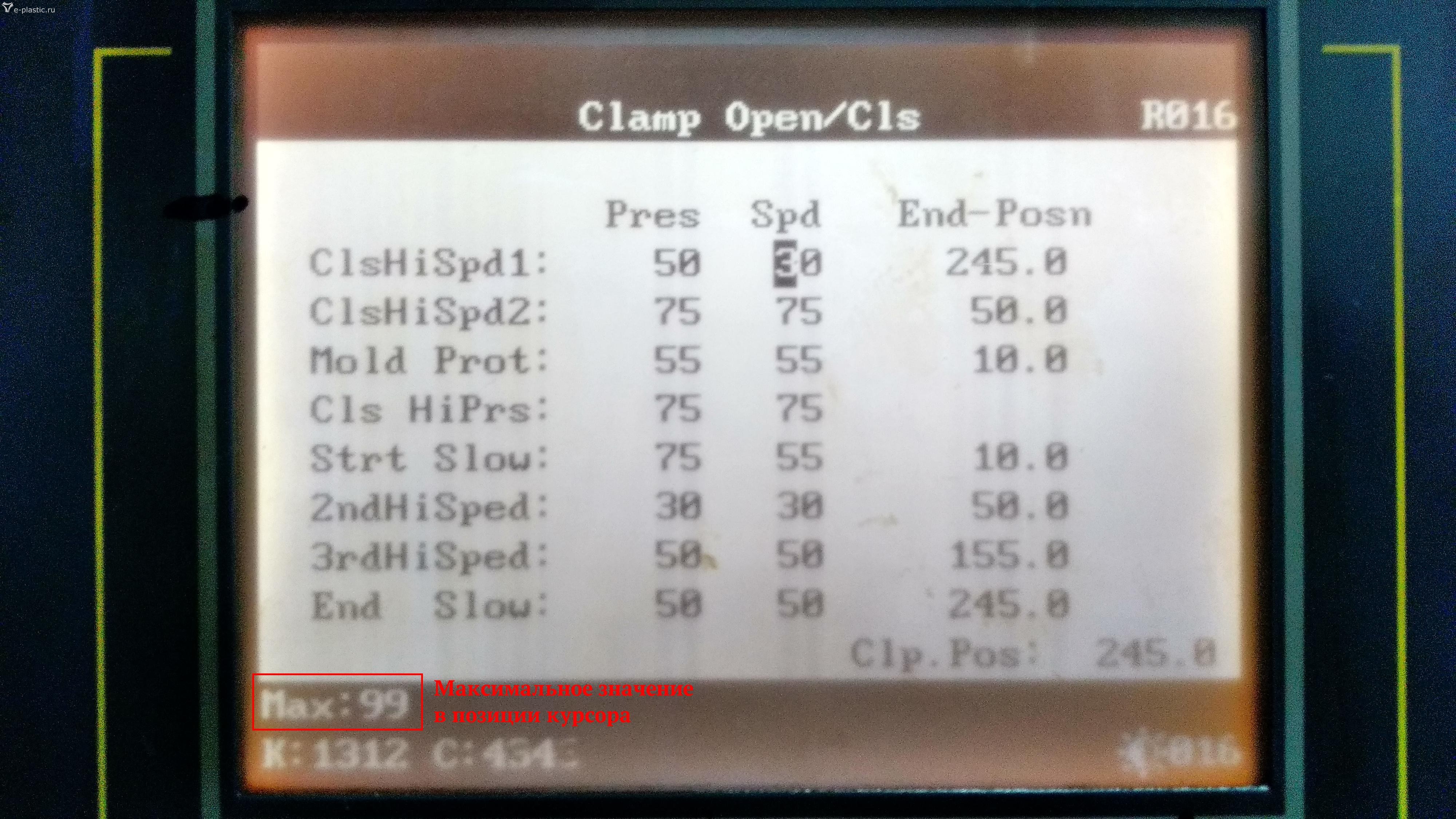 Итак, регулировка давления (PRESSURE). Снимаем со станка рабочую пресс-форму и ставим "заглушку" или ненужную пресс-форму максимального габарита.
