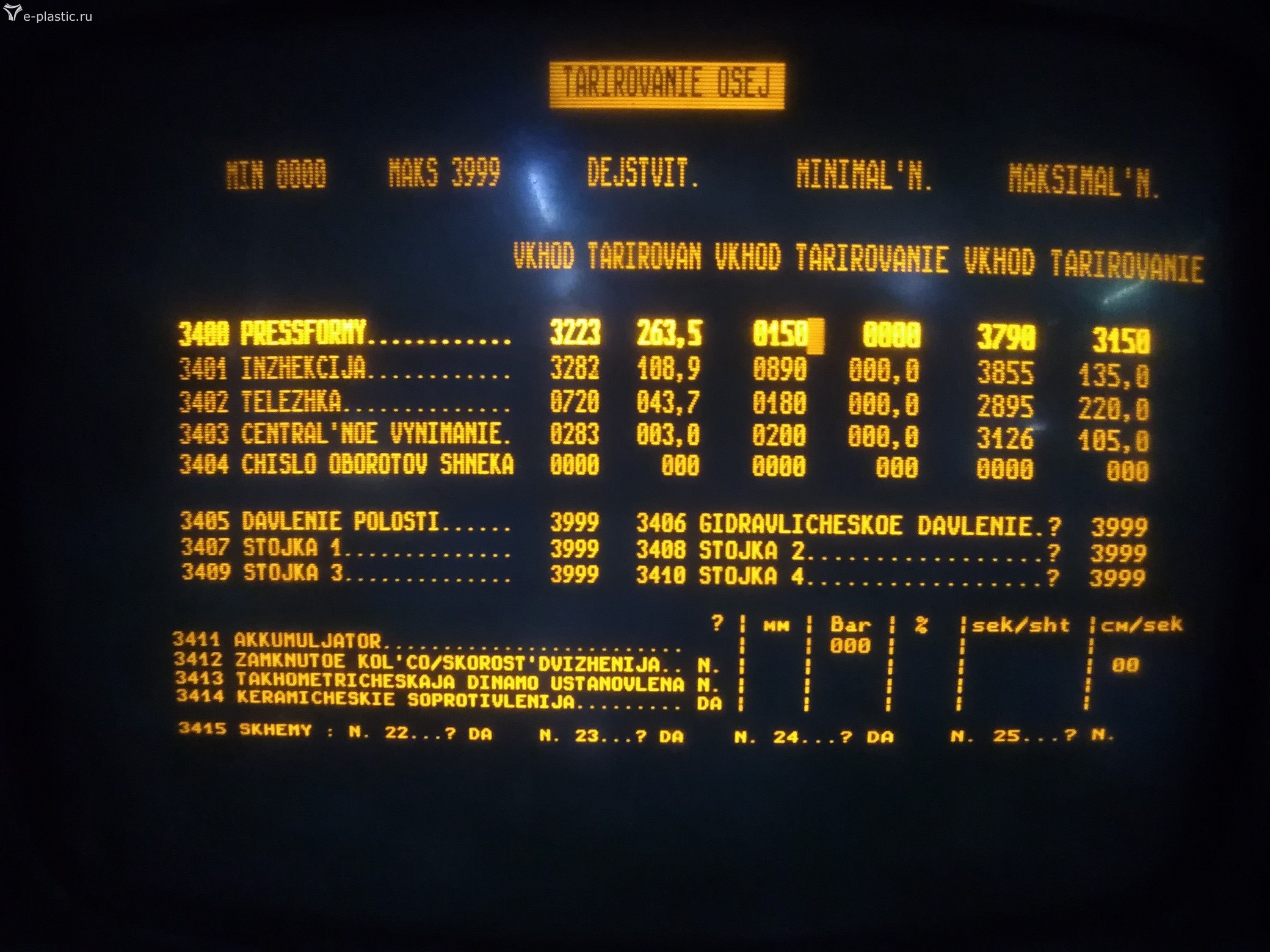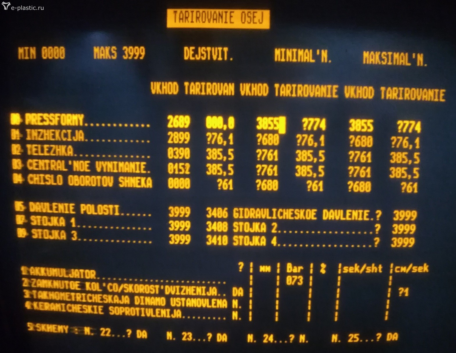 Замкнуло провод от клапана 24 В на корпус. Вылетел блок питания. Его восстановили. Но ТПА не запустилась. Из очевидных неисправностей - все линейки показывают 0 либо значения типа ?76. При этом на экране есть цифровое значение (которое равно 0) и шкала. Шкала отображается нормально, двигаешь ползунок линейки и шкала меняется, а цифровое значение нет. Никакие движения не работают, т.к. вылезают ошибки на положение формы, толкателя и т.п.