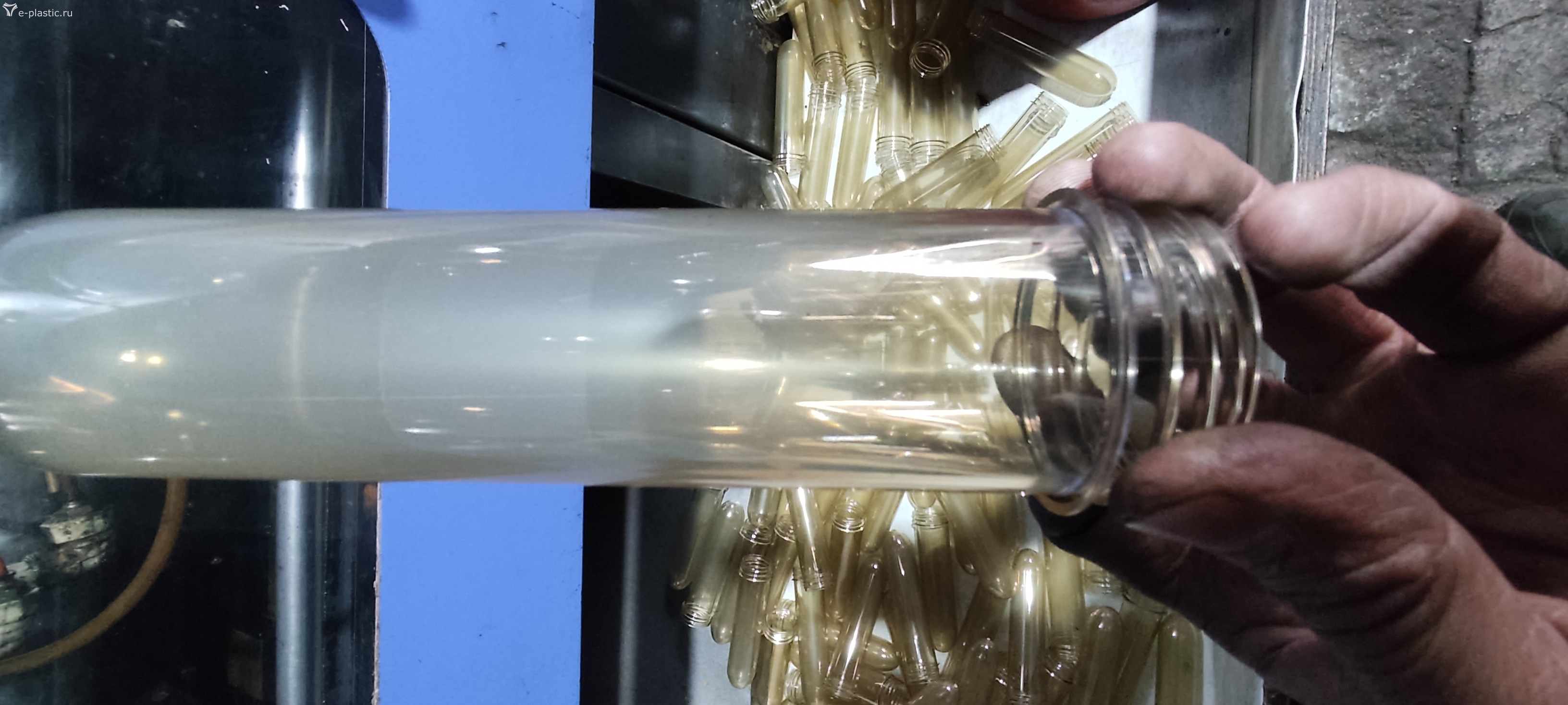 Геннадий 1985 писал(а): 04 фев 2024, 16:26 Всем доброго дня. Есть такая проблема что Пэт преформа белеет в толстой части. Охлаждение отличное. Уменьшение давления впрыска и скорости не много помогает убрать белизну но не всегда. Температура формы пробовали от самой холодной до горячий. Если кто сталкивался нужен совет.