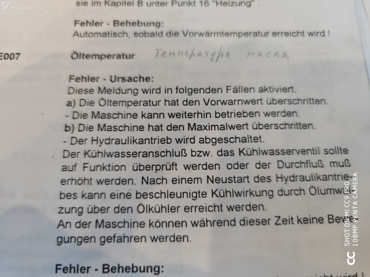 нет нагрева и горит ошибка "перегрев гидромасла"(номер не помню но он значку на панели соответствует)