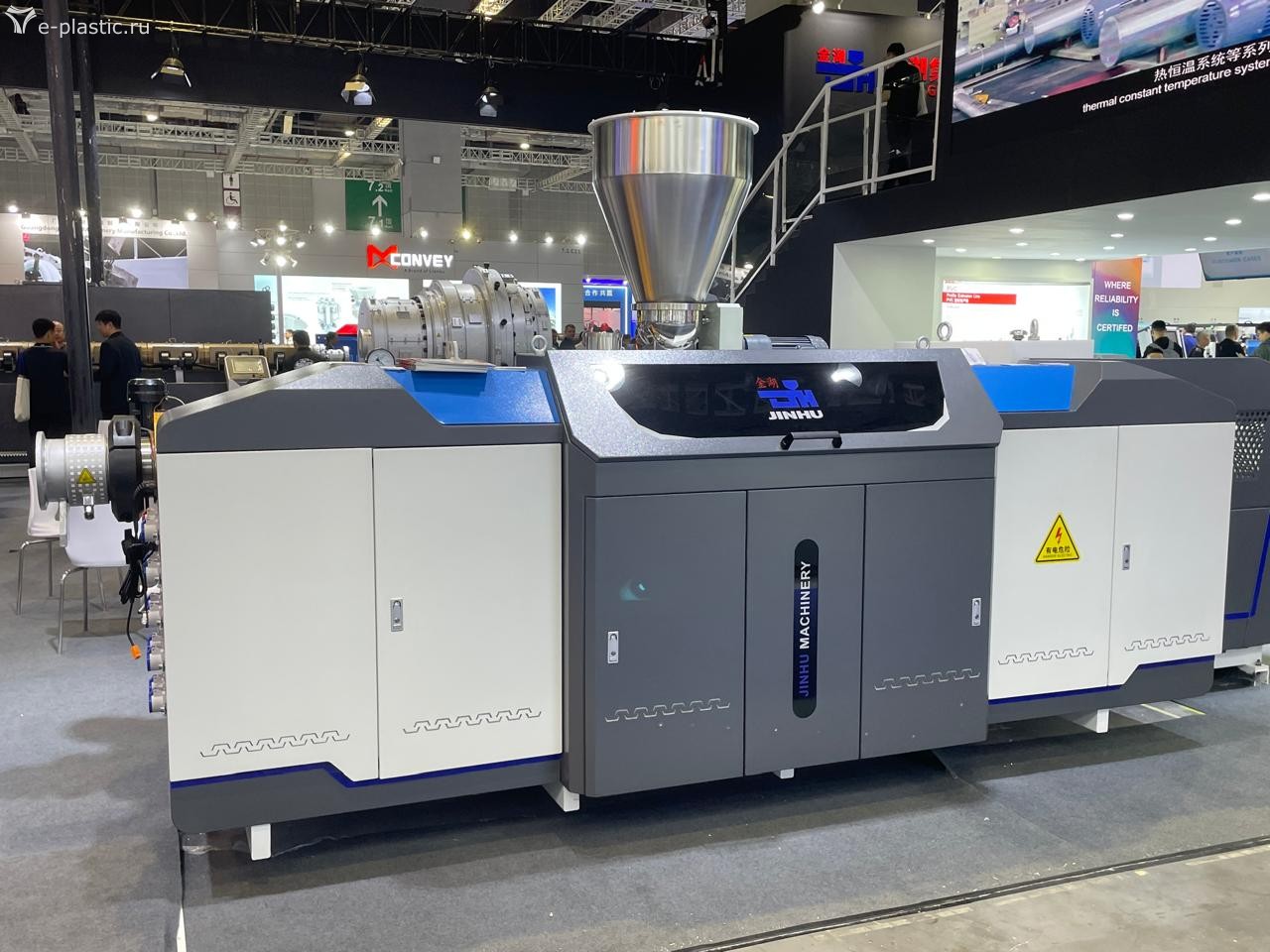 В области экструзии китайцы совсем подвинули европейских и всех остальных производителей. Таких участников было видно очень мало и представляли они ограниченные экспозиции. Огромные (или мелкие, но много) китайские экструдеры, линии и сопутствующие устройства заполонили просторные павильоны Chinaplas 2024 и показали, что в этой области местные компании уже очень сильны. Это относится и к довольно сложным пленочным многослойным технологиям, впрочем, традиционных гигантских пленочных линий было совсем немного. Поменьше стало и огромных блестящих валов, а также труб многометрового диаметра, всегда бывших витриной достижений китайского машиностроения на этой выставке.