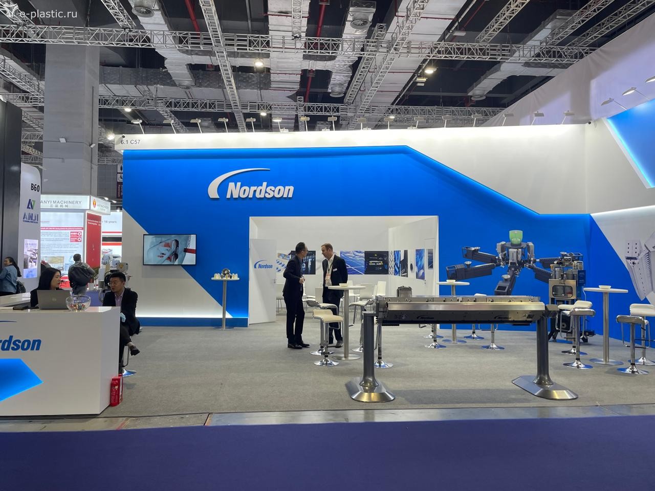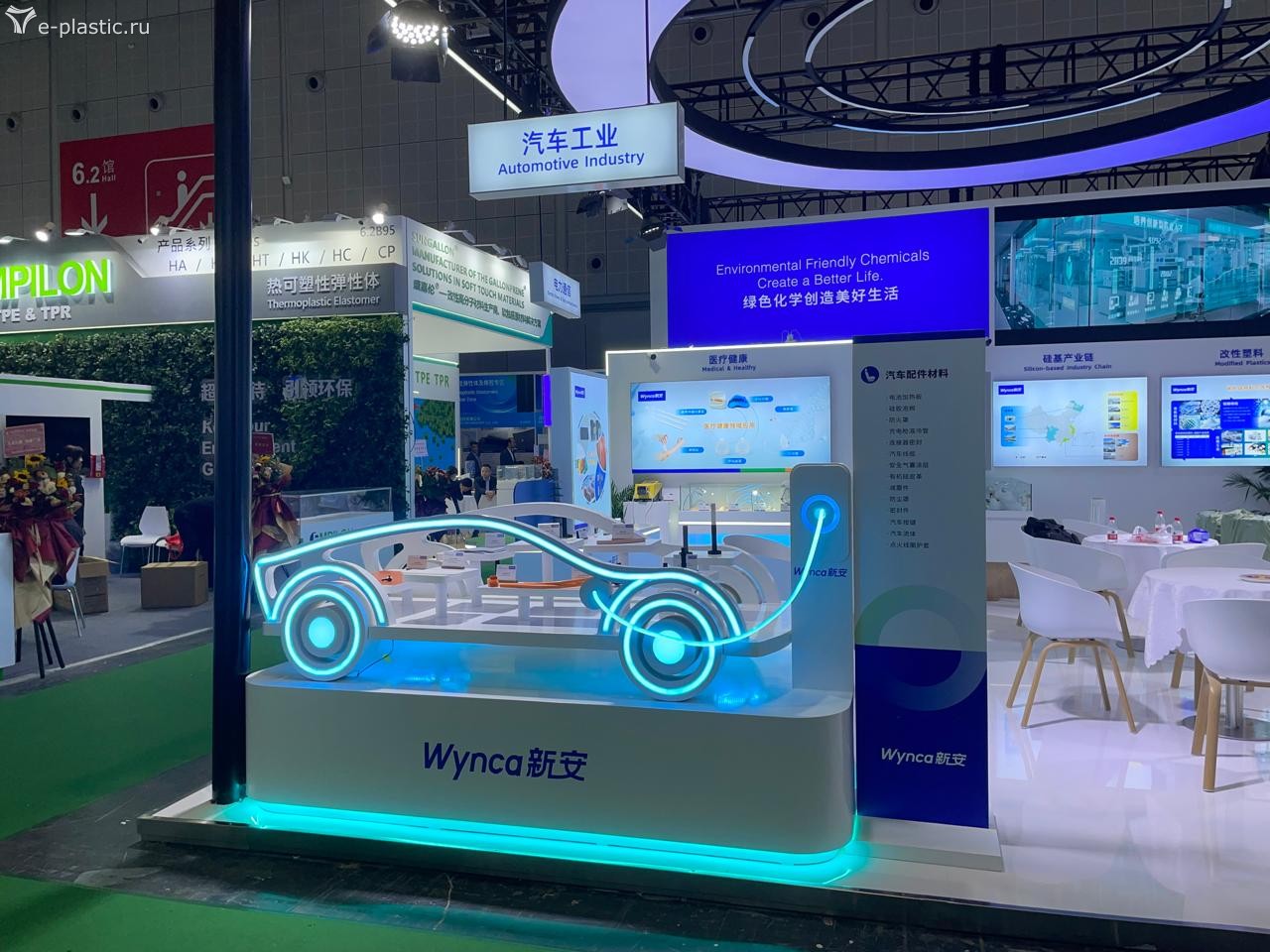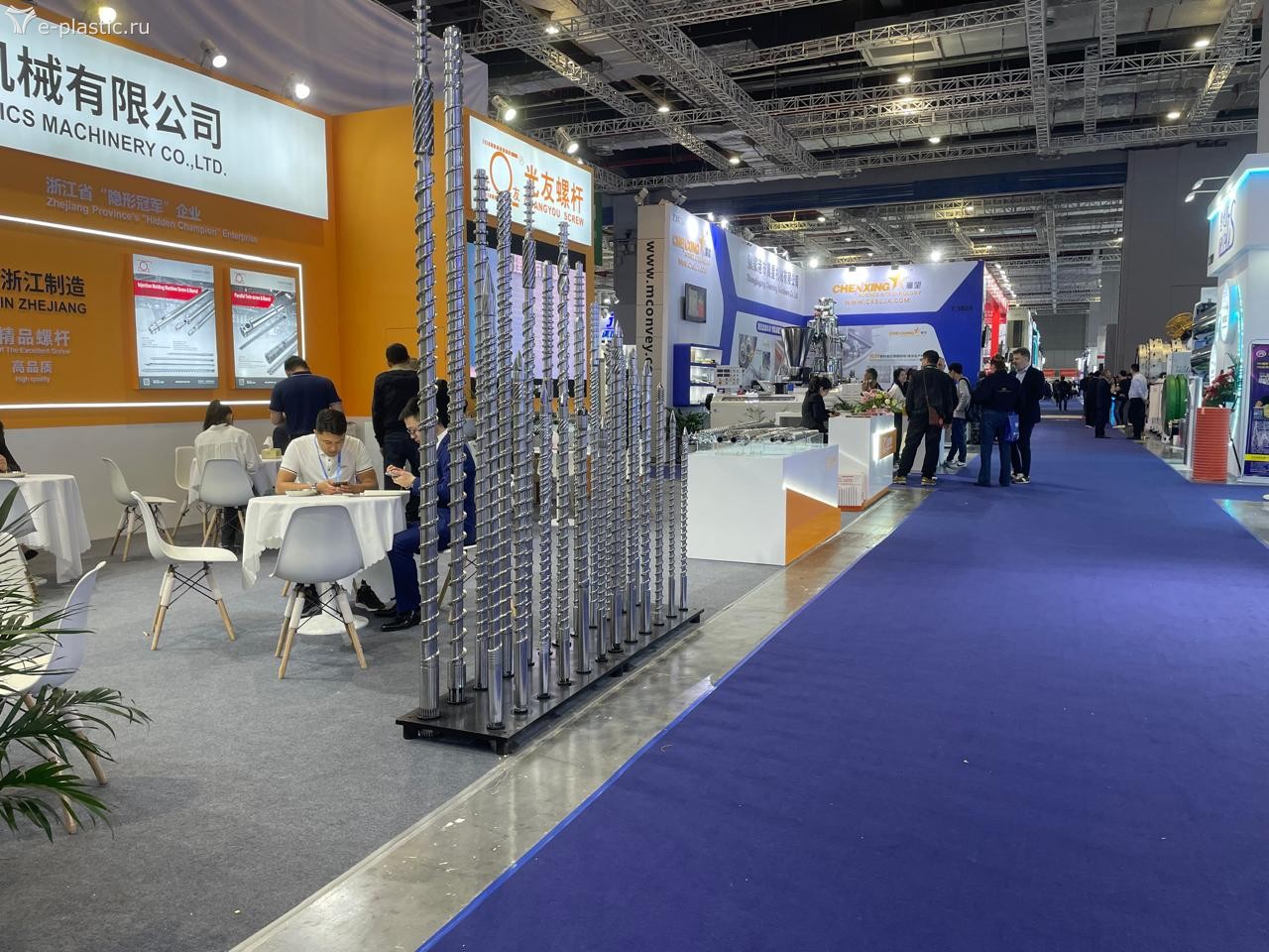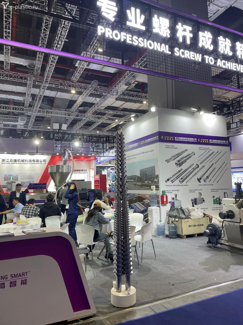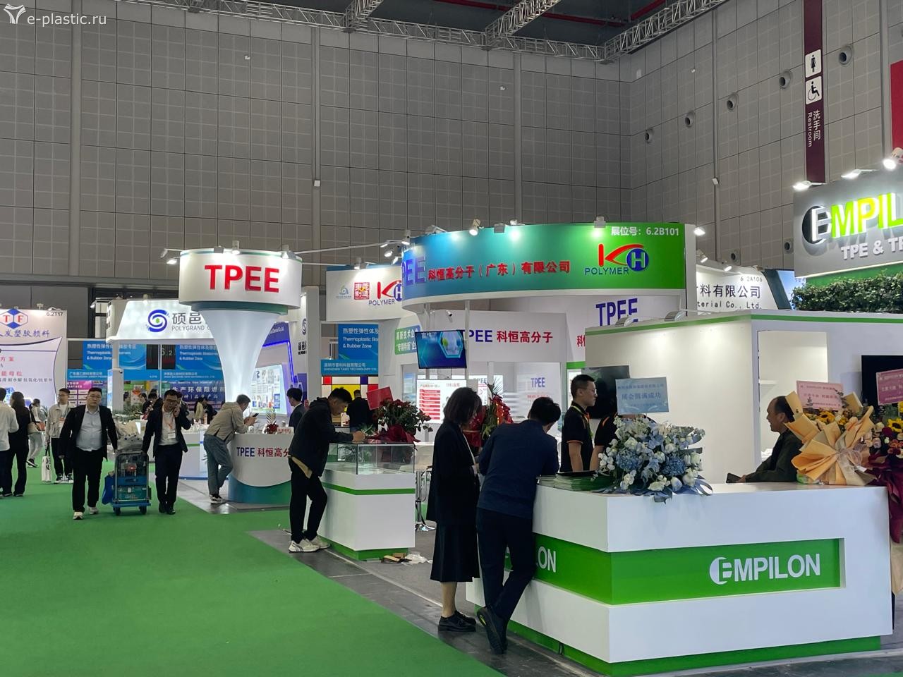 Удивила немного экспозиция компаний производителей и поставщиков полимерного сырья и сопутствующей химии. Во-первых, по сравнению с предыдущими аналогичными событиями, она оказалось удивительно мала. Во-вторых, не сбылись ожидания увидеть там стройный ряд российских нефтехимиков, уже всё импортозаместившими и атакующих азиатские рынки высококачественными полимерами и прочими каучуками. Объединивших большую их половину Сибур имел довольно скромный и бледный стенд (даже без иероглифов в шапке, что сильно нас расстроило), Лукойл, Роснефть и остальные вообще не явились. Европейские и американские бренды полимерного сырья также были неактивны, а доминировали китайцы, корейцы, арабы и японцы. Великих и ужасных нефтехимиков из Ирана видно почему-то не было.
