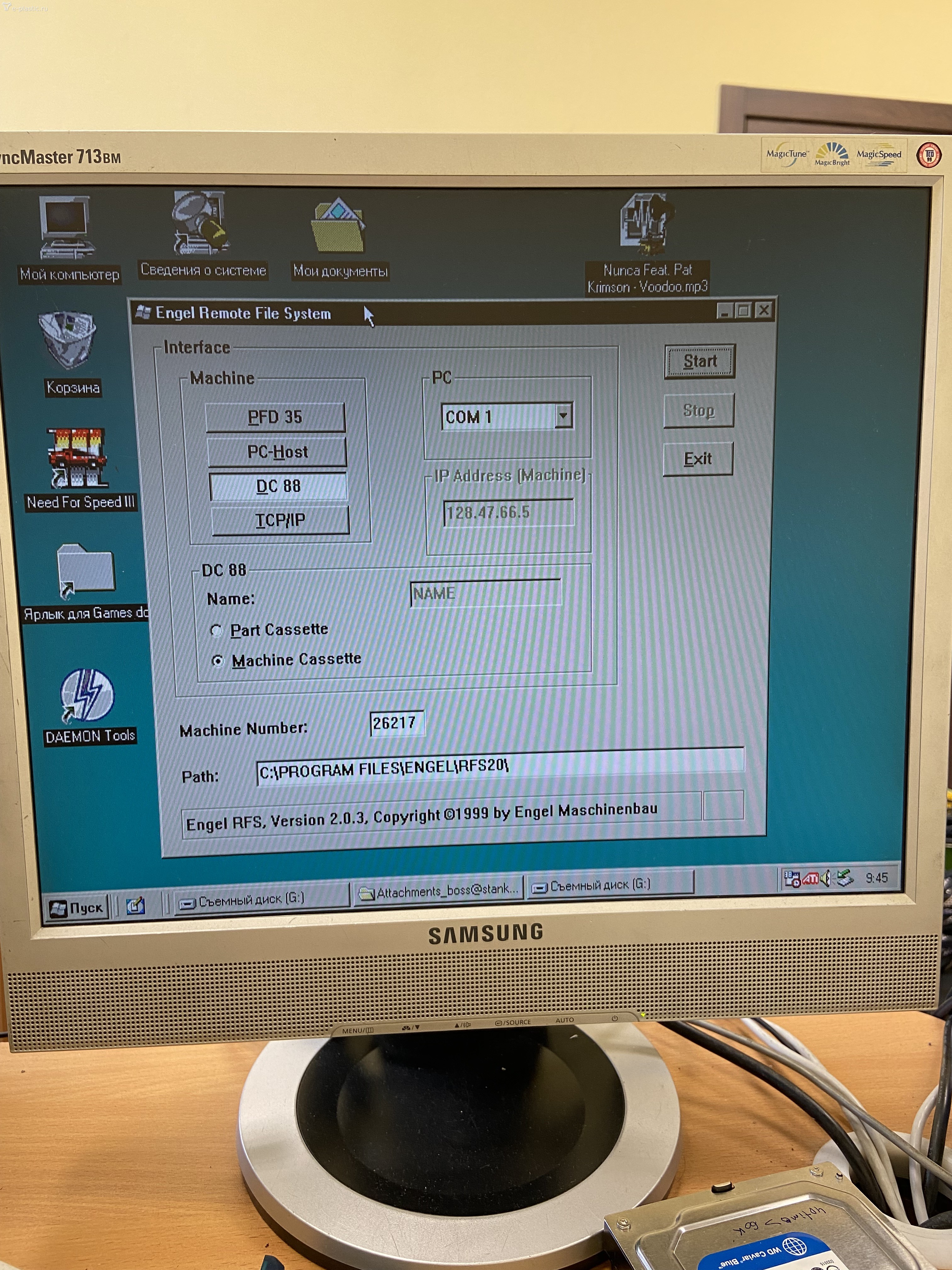 Имеется на производстве такой вот ТПА. К нему был подключен ПК (провод со стороны ТПА разъем DB25 Male, со стороны ПК DB9 Female), с установленной Windows 98 и программой эмуляции носителей RFS 20.