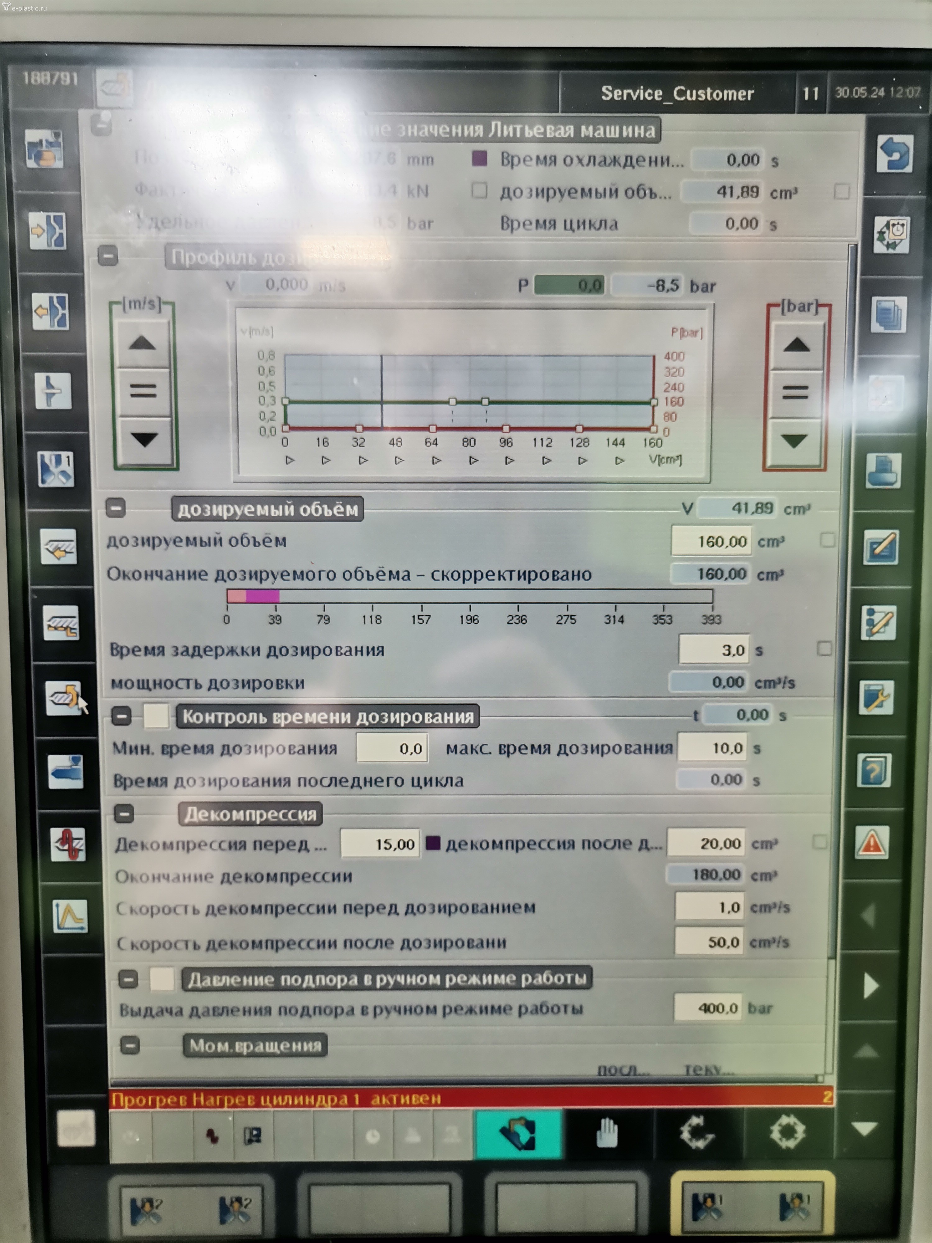 Машинам более 10 лет. Делаем тару для собственных нужд. Я не нашёл, как программа отслеживает положение мотора, кроме как по углу поворота и количеству оборотов (т.е. по резольверу, установленному на моторе)... может действительно есть какой-то потенциометр (типа линейки), при этом как вы пишите идёт сравнение двух величин и может не даваться команда на запуск... только вот, сигнал на мотор идёт, он стартует и тут же как при неправильной фазировке впадает в ступор под нагрузкой, т.е. токи большие (момент вращения большой) - и начинает дико греться. Пробовал менять путь декомпрессии до набора, скорость не пробовал (установлена 1,0 сm3/s, какая может быть минимальная не знаю). Завтра проверим, а вдруг.