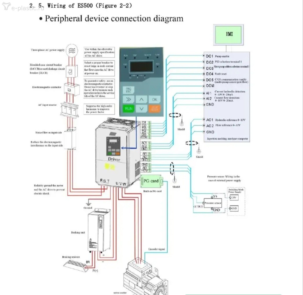 У нас есть термопластавтомат EASTMAX EMS148 (2013 г.в., энергосберегающий с сервомотором, шнек 40 мм, теоретический впрыск 252 см³) 34. После замены энкодера на Phase Ultract 3 машина не выполняет полный цикл работы. Предполагаем, что необходимо перенастроить параметры на инверторе ECOL ES500T030-C, но не можем найти инструкцию по корректному вводу параметров.
