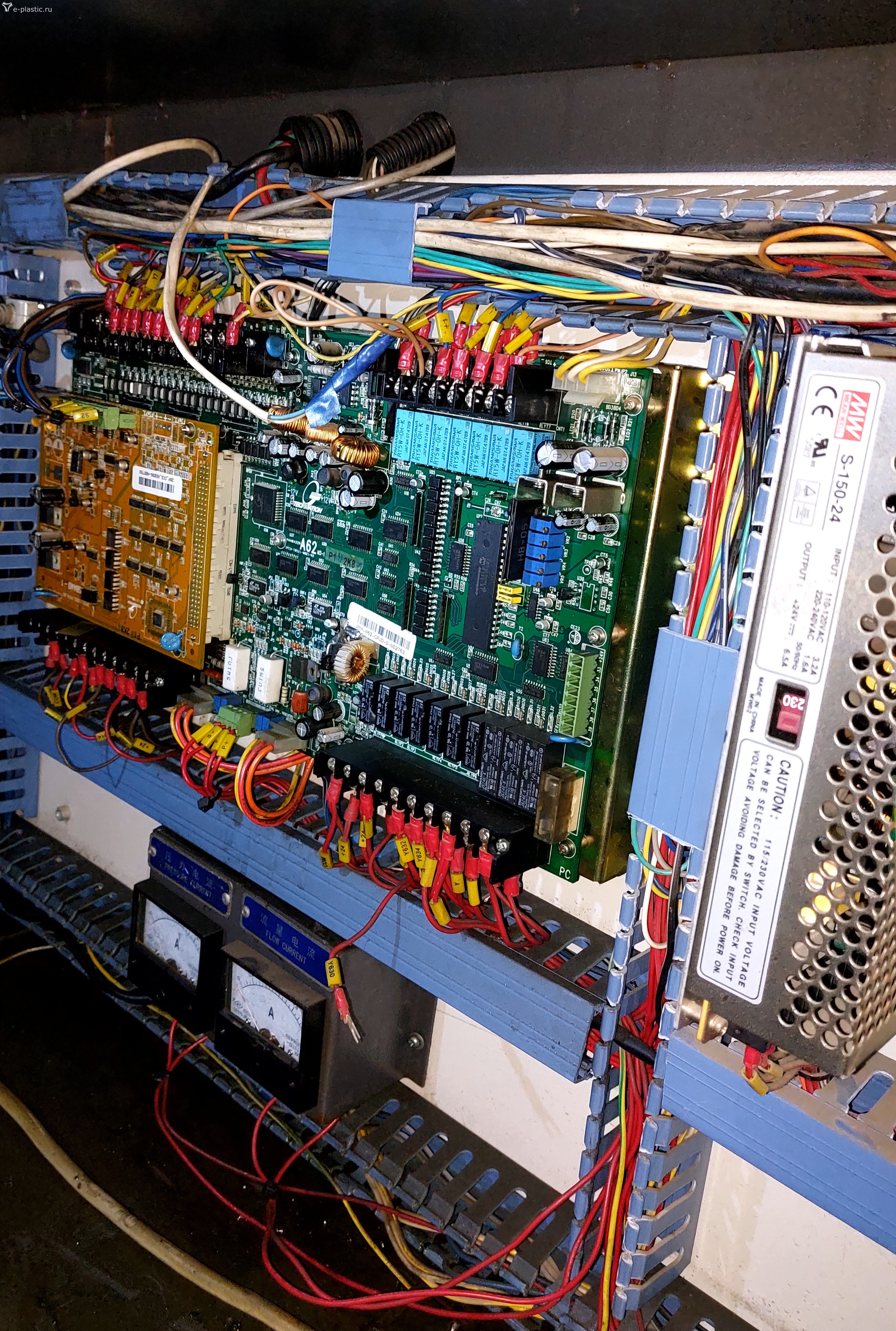 Ещё раз внимательно посмотрел фото контроллера. Похоже, у вас совсем отключен (ввиду неисправности) один из каналов нагрева материального цилиндра. Тот самый провод Y630. Что подтверждается дополнительным терморегулятором, установленным над панелью оператора. То есть "спецы" из Краснодара не совсем "спецы".